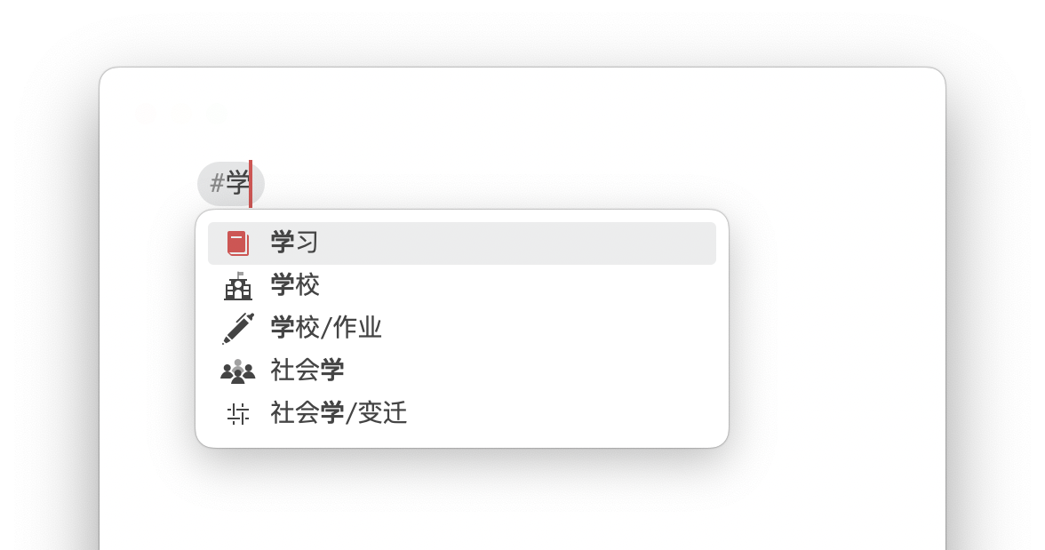 熊掌记提供标签自动完成和笔记自动完成功能帮你减轻负担。这些功能可帮助您快速将现有标签应用到新笔记中,并创建正确的笔记链接。