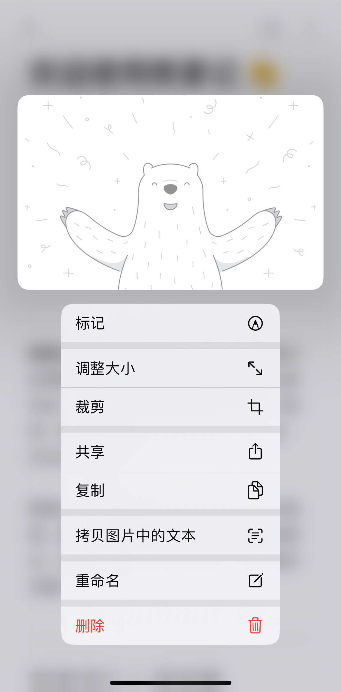 - 在 iOS 上,长按图像,然后选择 “调整大小”