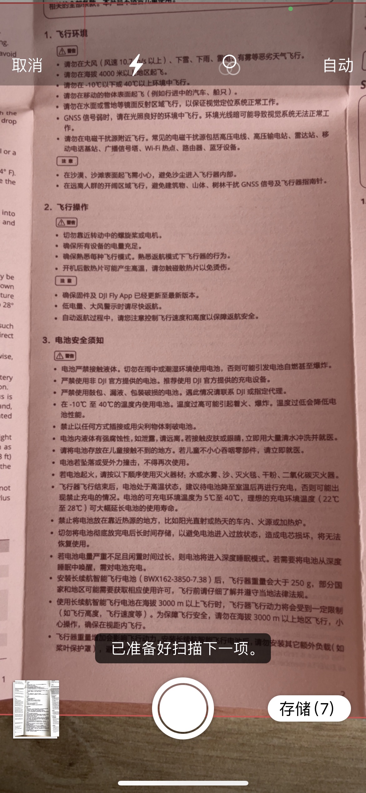 - 一旦相机识别到文档在视野中,文档将突出显示,并且您的设备将自动拍摄照片