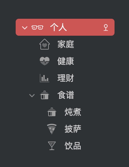 熊掌记为您的笔记提供名为标签图标的增强图标。小巧易辨别的图标将显示在侧边栏的标签旁。(了解有关标签的更多内容:《熊掌记的标签系统》)