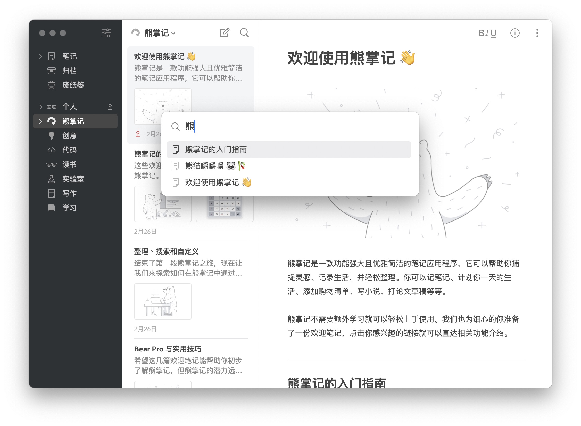 在熊掌记的搜索中,你可以使用精确词组、搜索多个关键词,或排除某些词组来进一步过滤您的搜索。