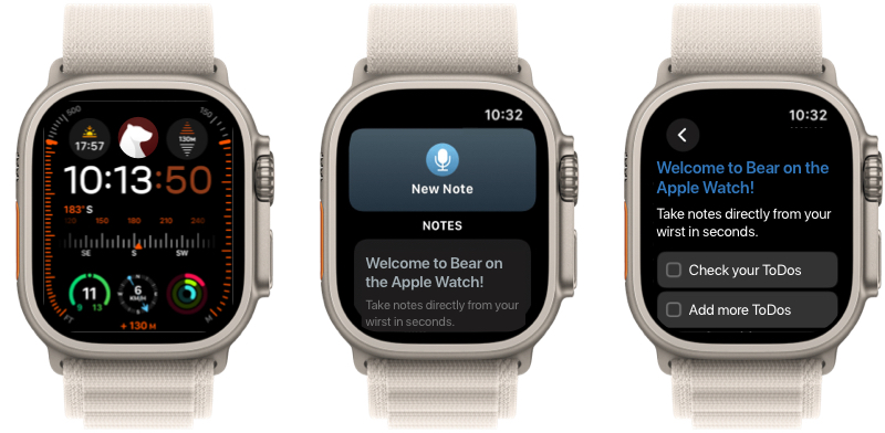 使用 Apple Watch 版本的熊掌记,您可以快速地将文本追加到笔记中: