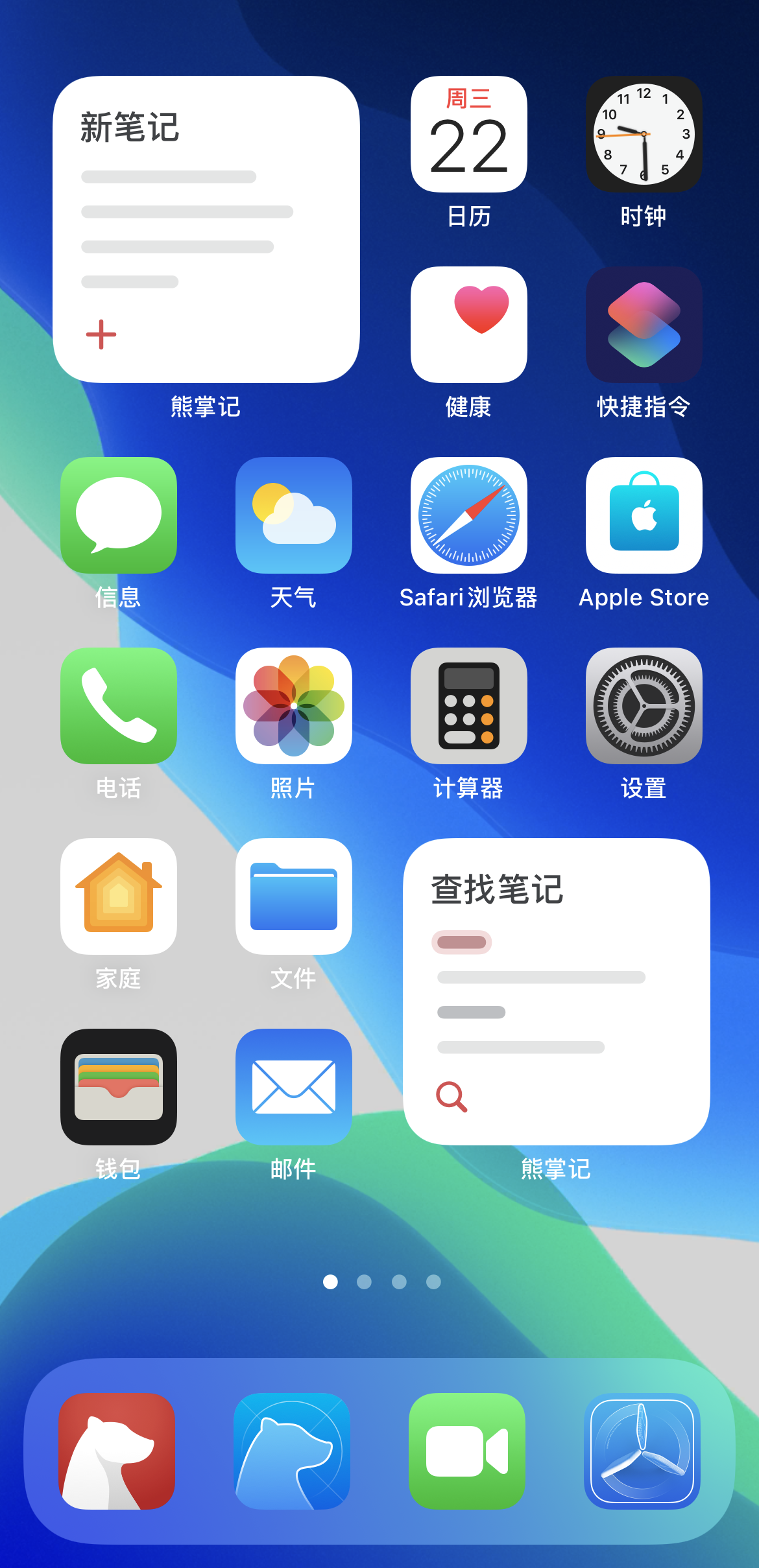 - 搜索小组件(小/中/大):快速查看熊掌记中与搜索条件相匹配的最近笔记。另外,点击底部标签就能直接在熊掌记中打开搜索结果。