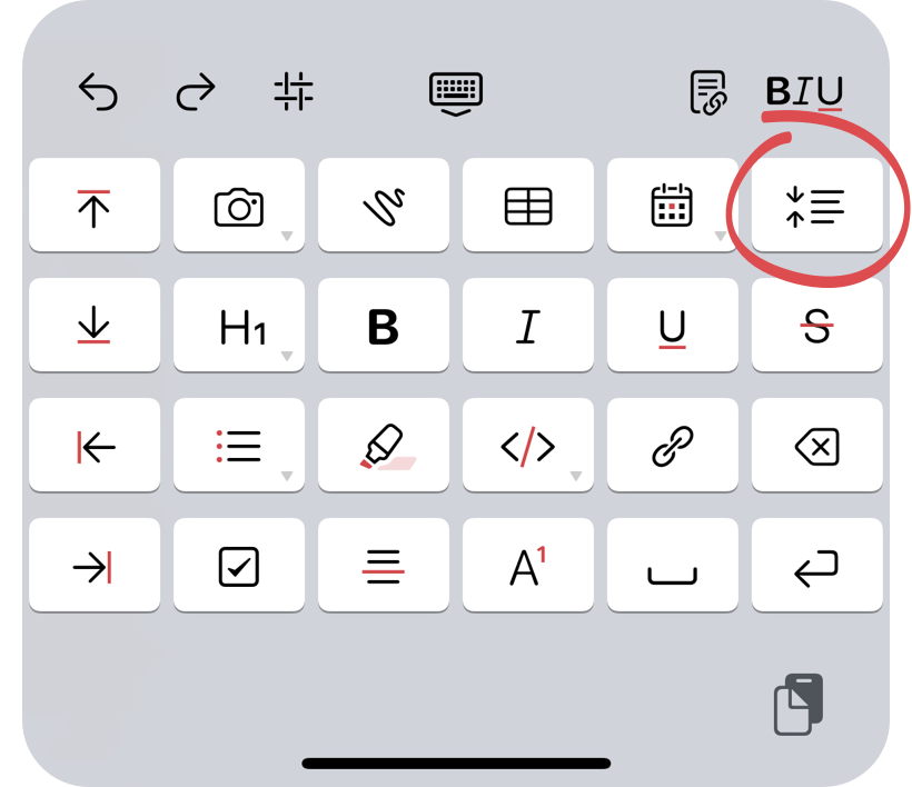 - On iOS or iPadOS, tap the BIU icon at the top right of the keyboard