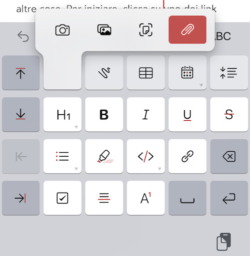 You can attach pictures and files to Bear notes by tapping either the camera icon or the attachments icon in Bear’s BIU keyboard.
