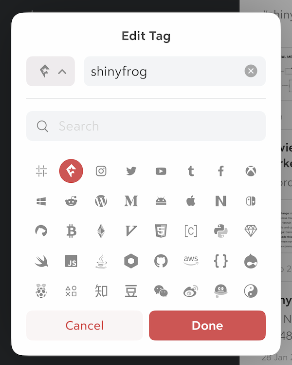 - Long-press a tag in the Sidebar and choose Change Tag Icon…