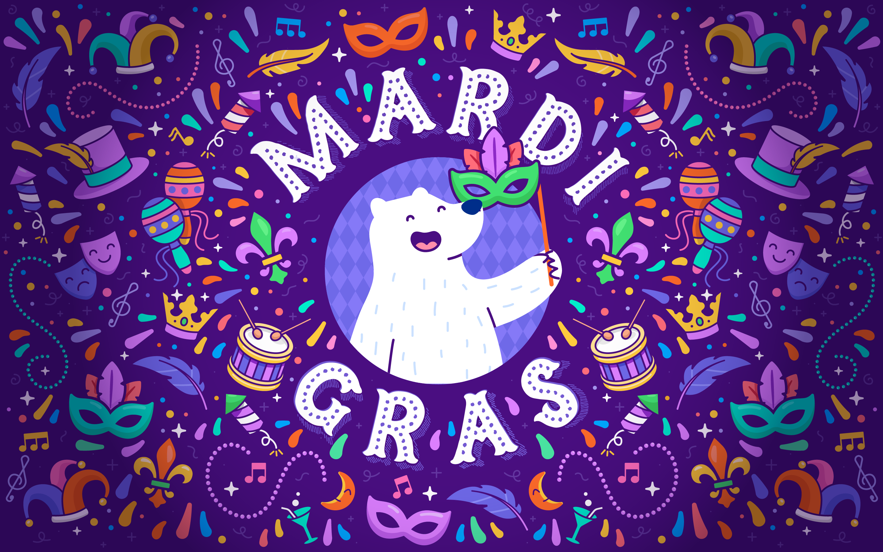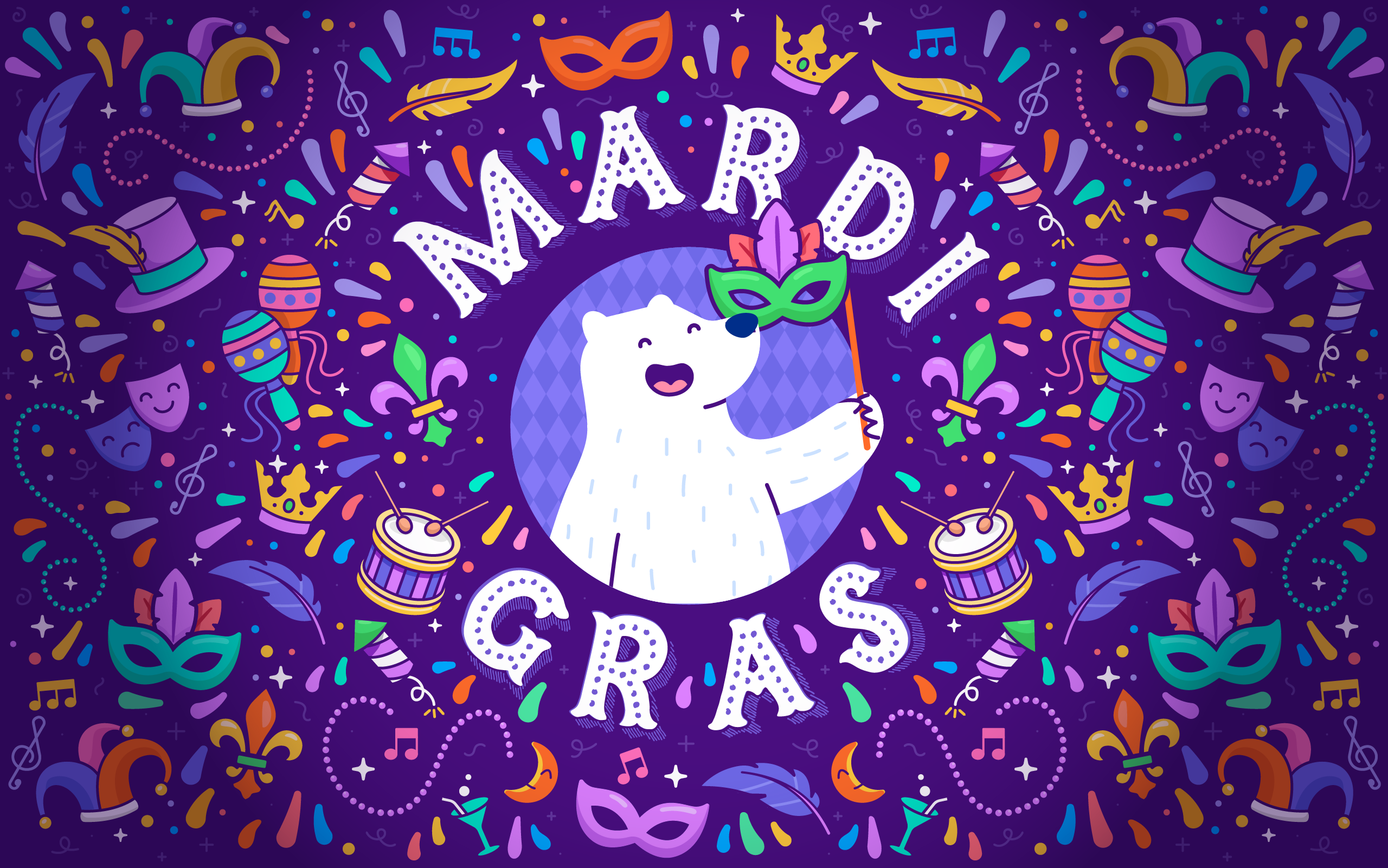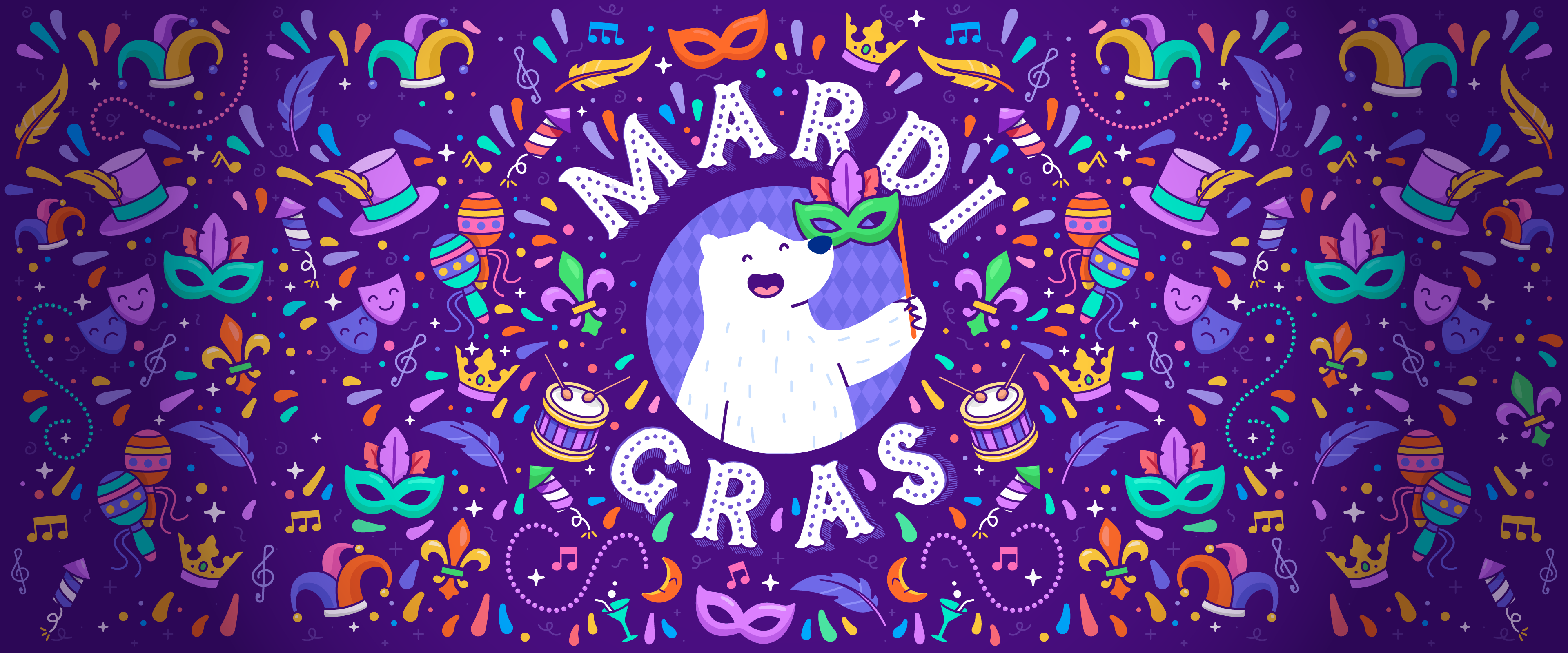 Inspired by the Mardi Gras celebration, this month's Bear is lookin' snazzy and feelin' jazzy.
