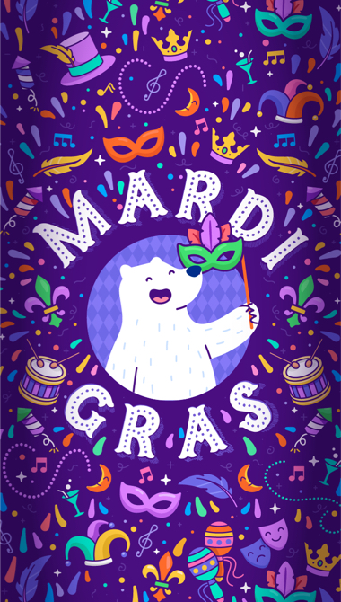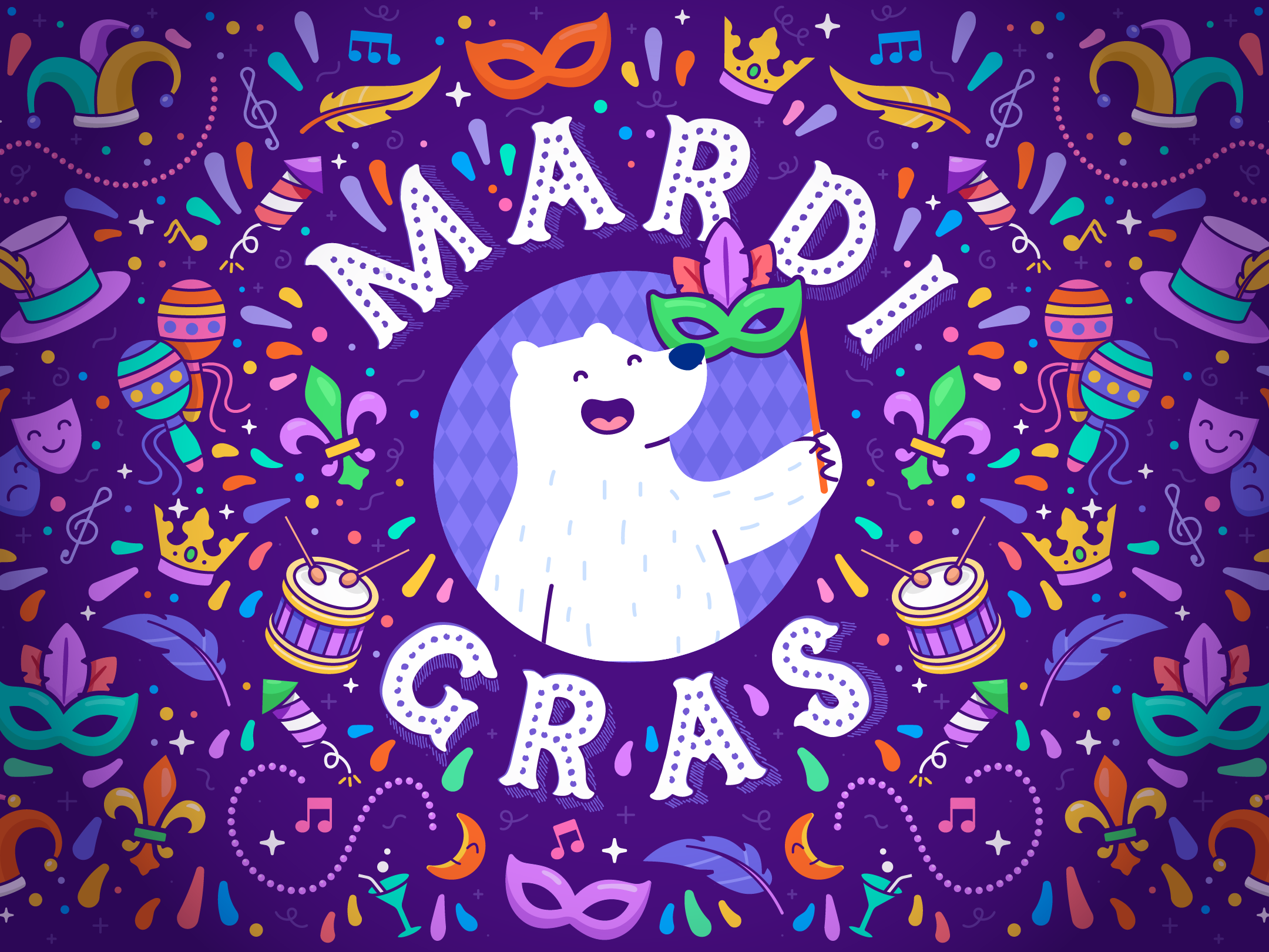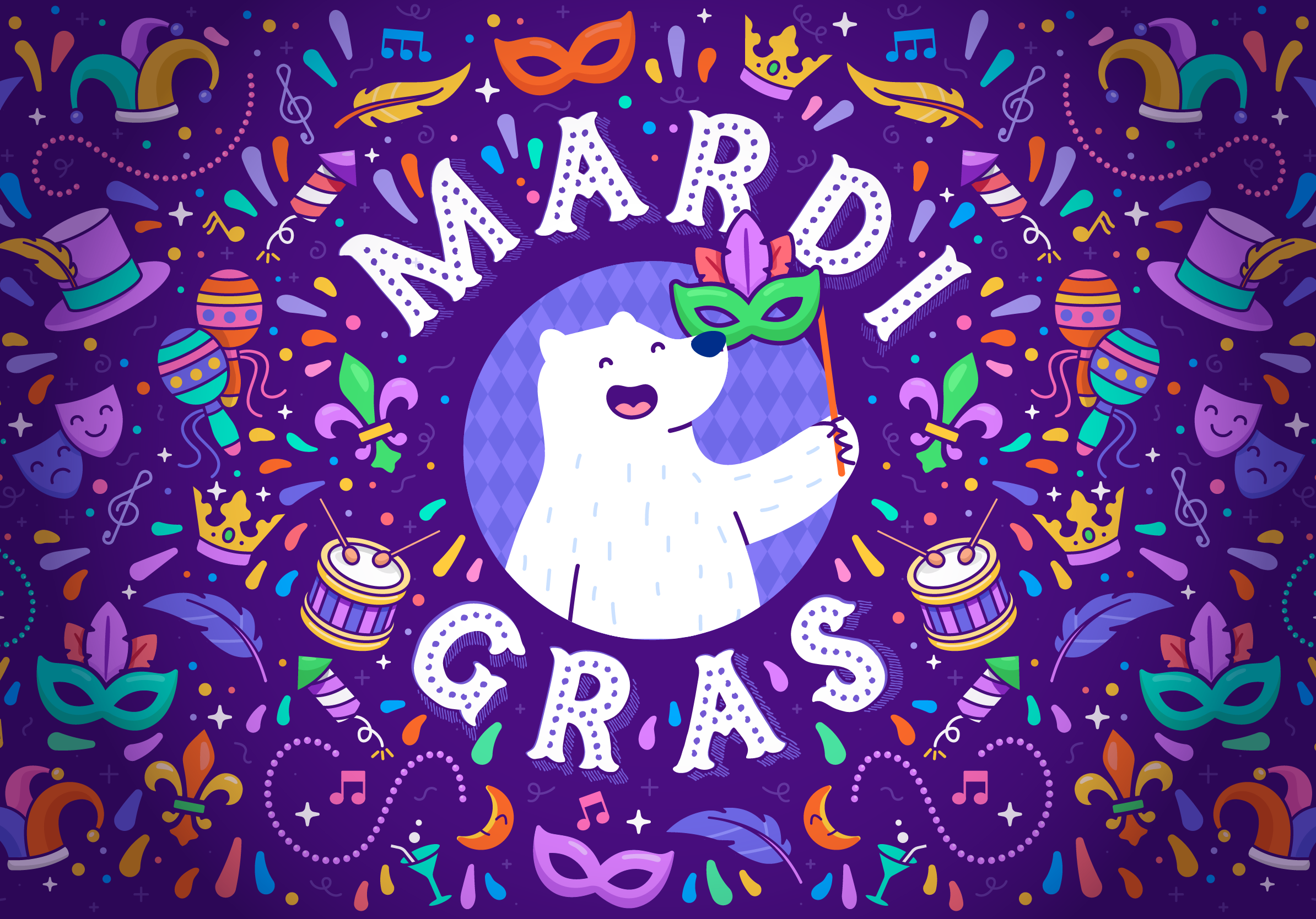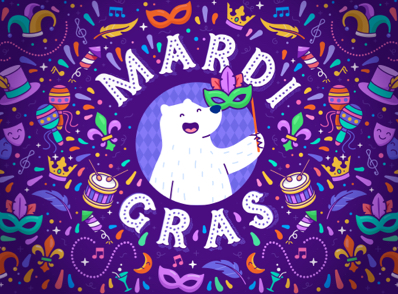 Inspired by the Mardi Gras celebration, this month's Bear is lookin' snazzy and feelin' jazzy.