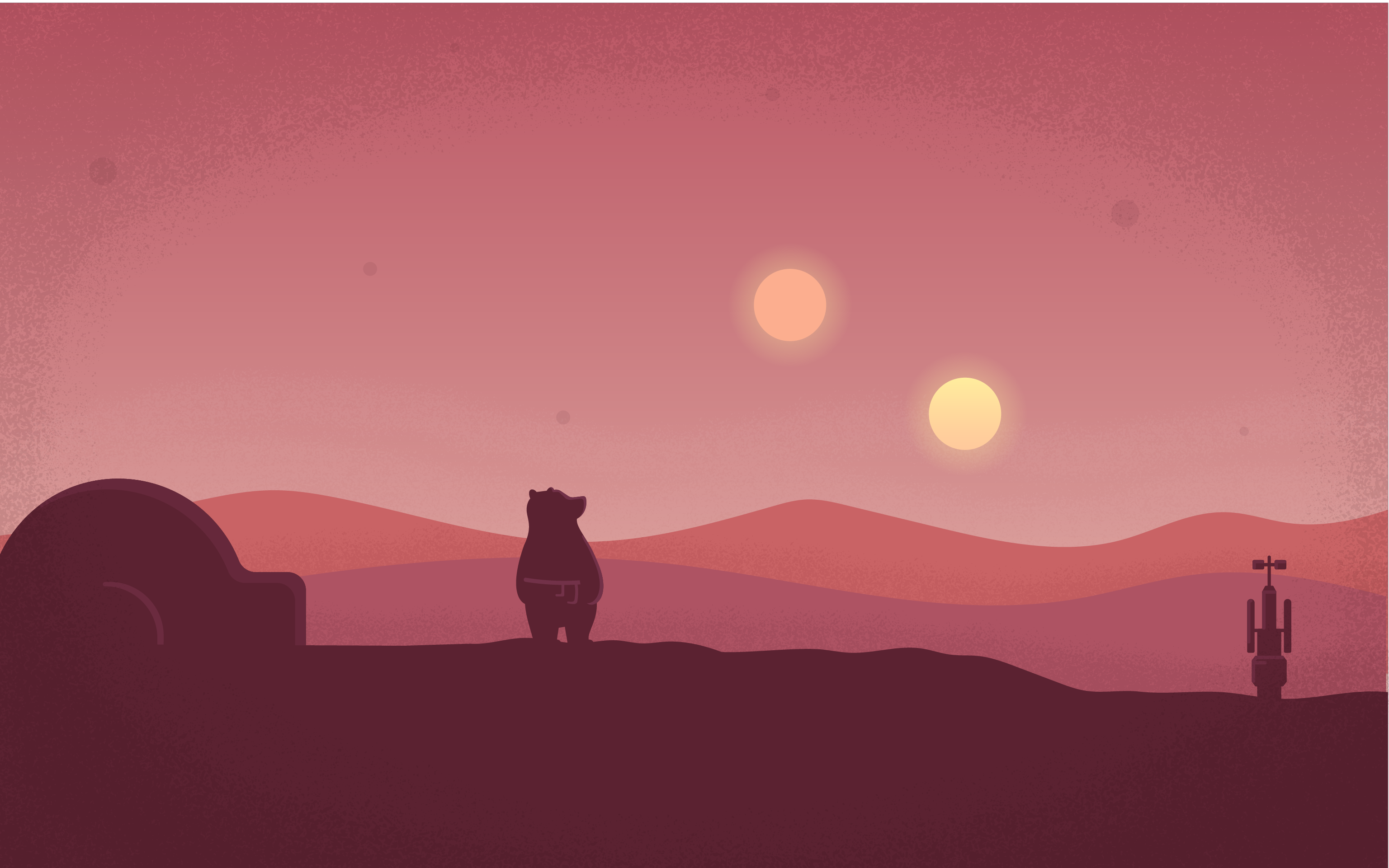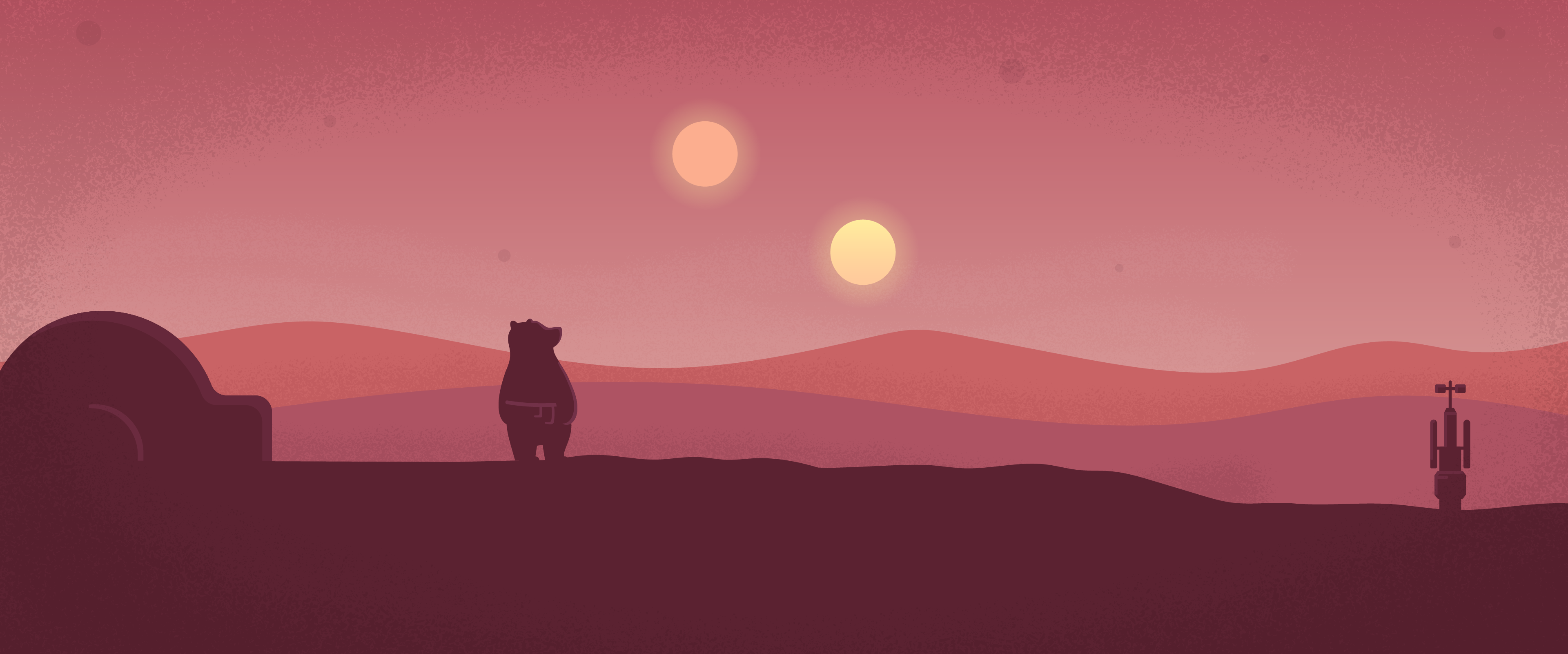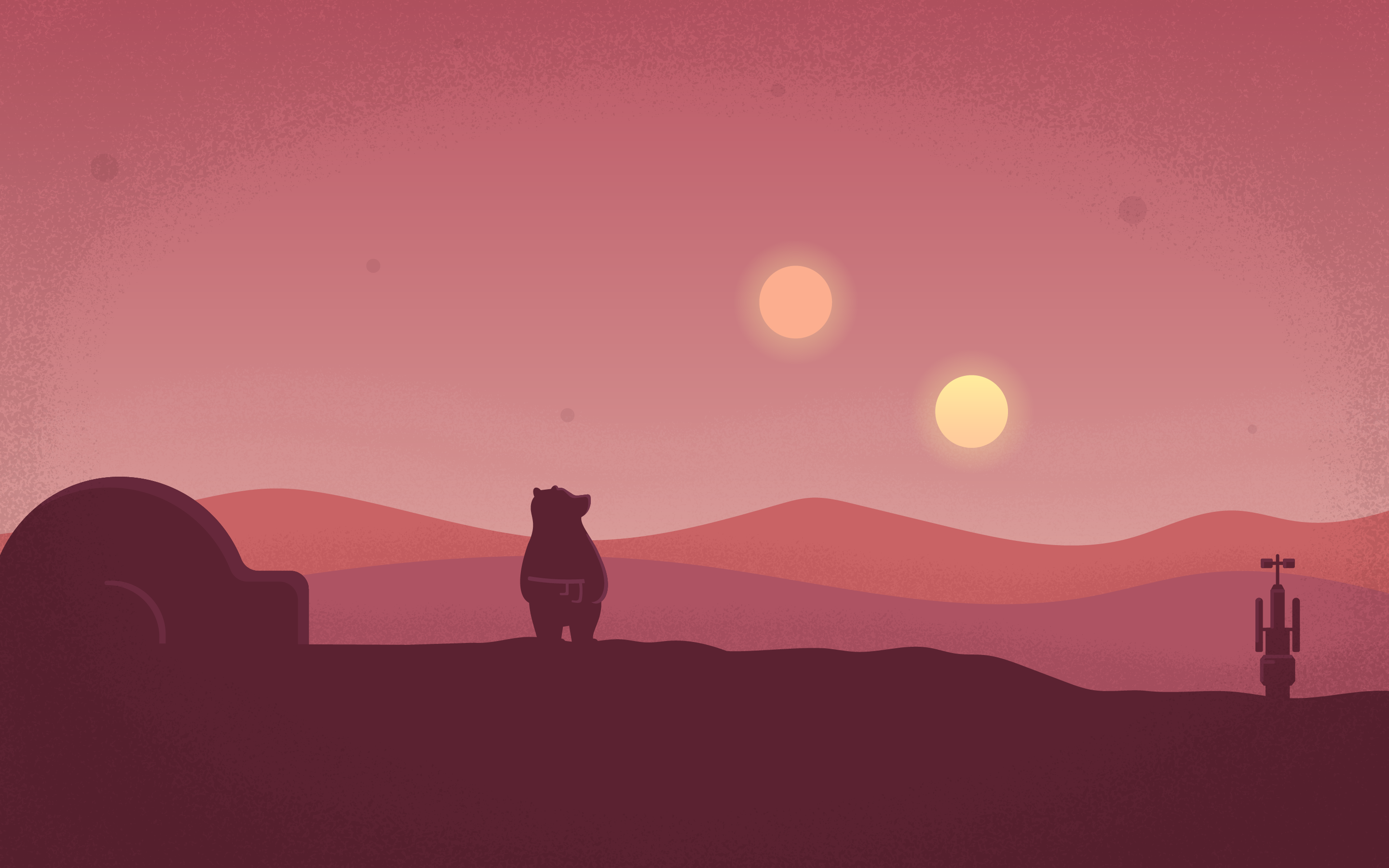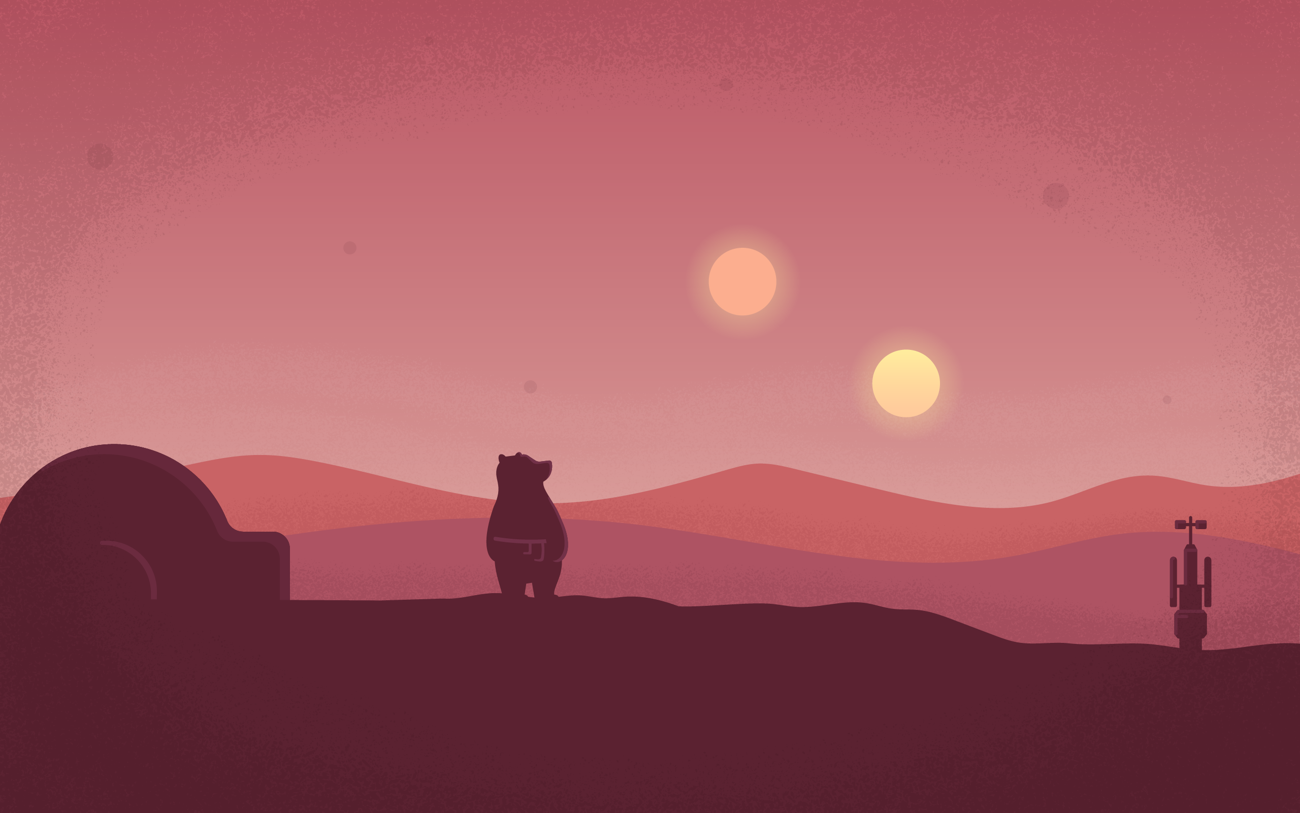This month's wallpaper is inspired by the original Star Wars trilogy, with the iconic Tatooine scene. So to celebrate today, join Bear on his home planet, Tedtooine!