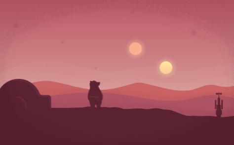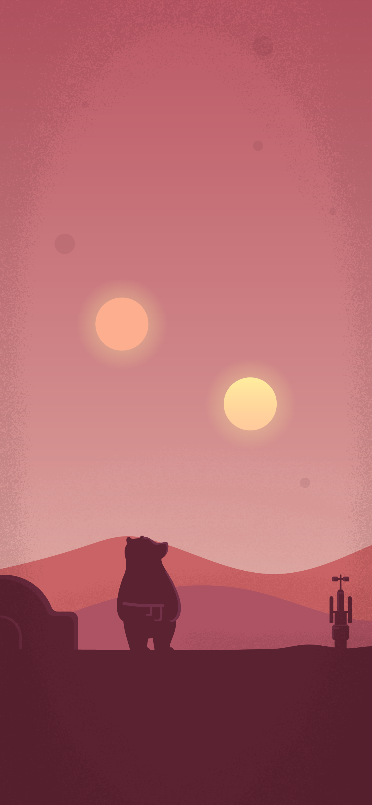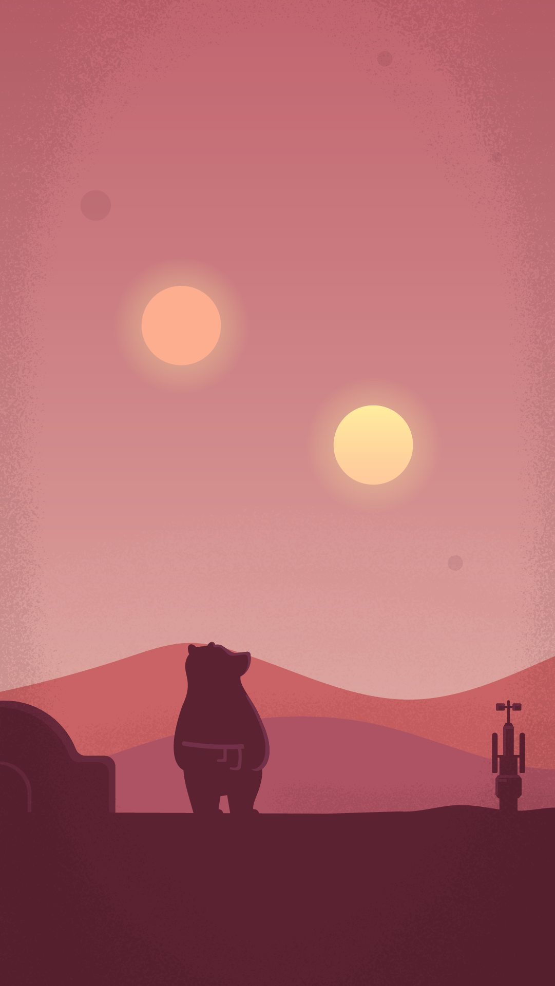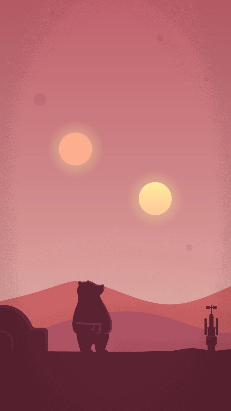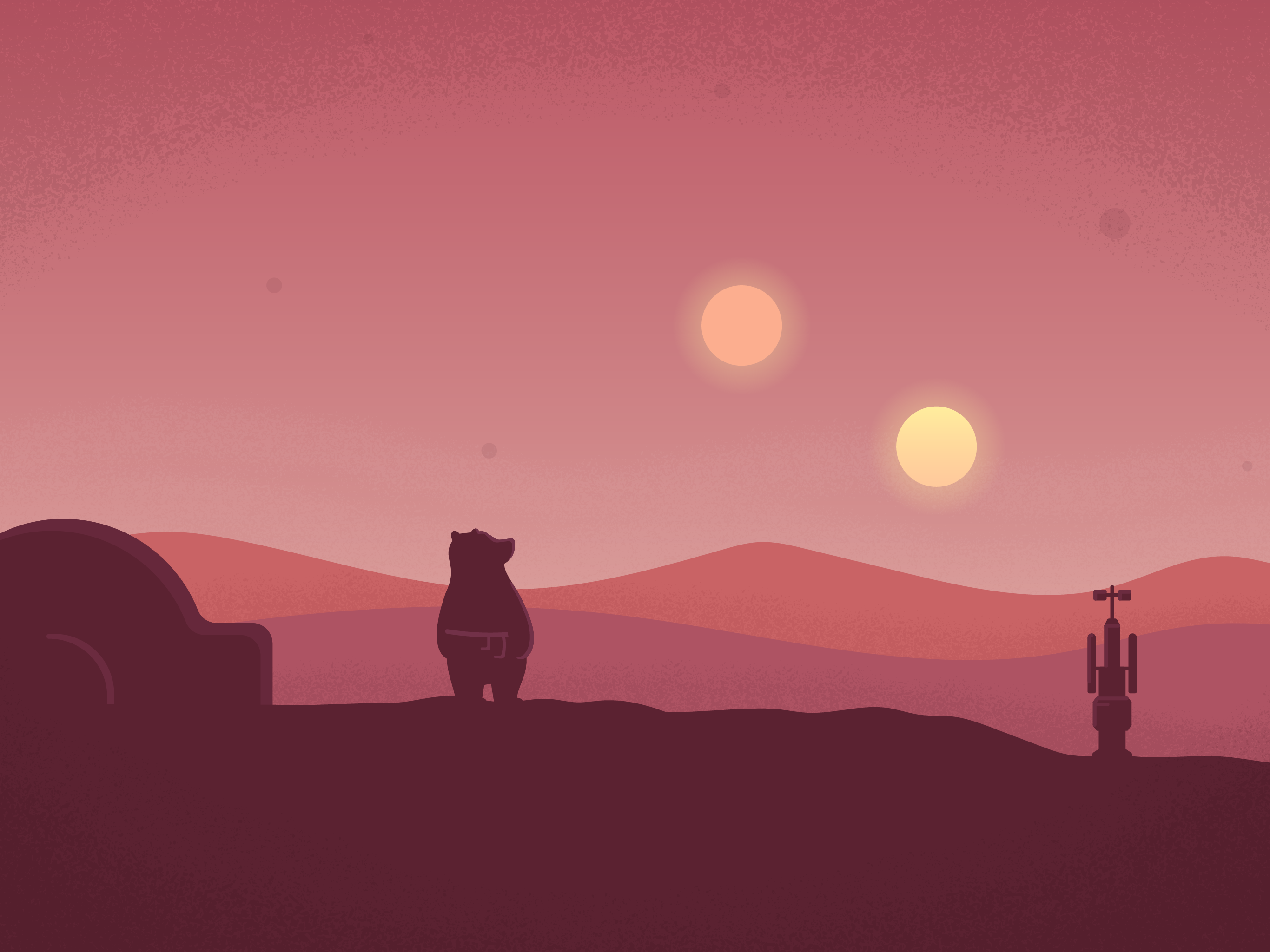 This month's wallpaper is inspired by the original Star Wars trilogy, with the iconic Tatooine scene. So to celebrate today, join Bear on his home planet, Tedtooine!