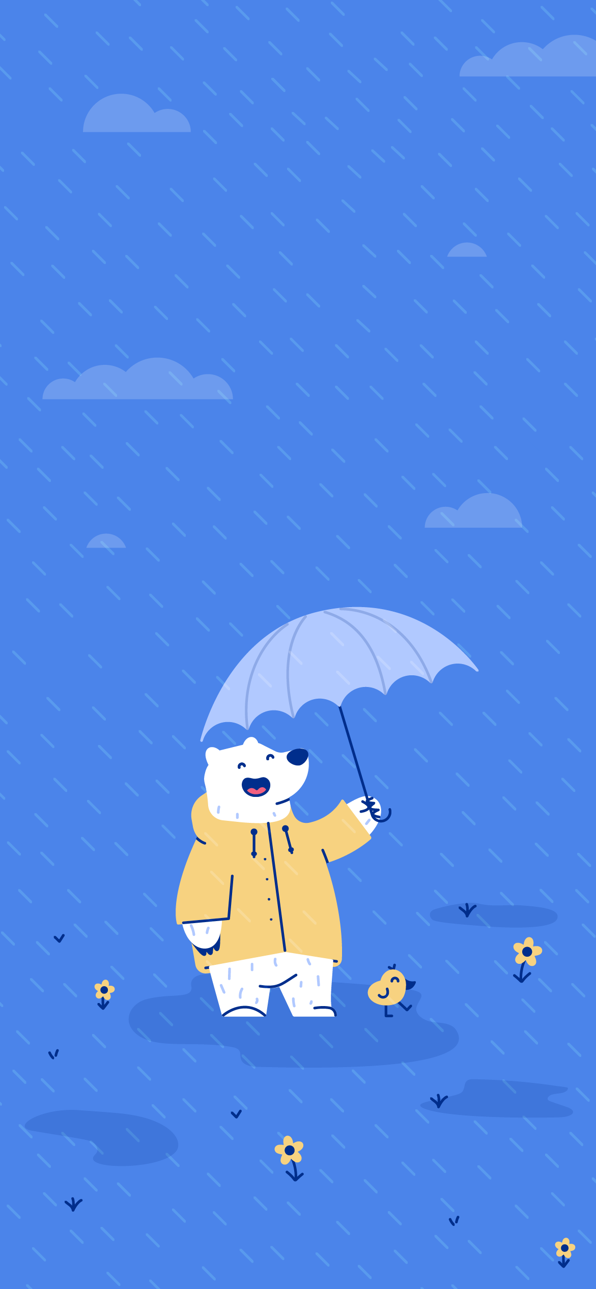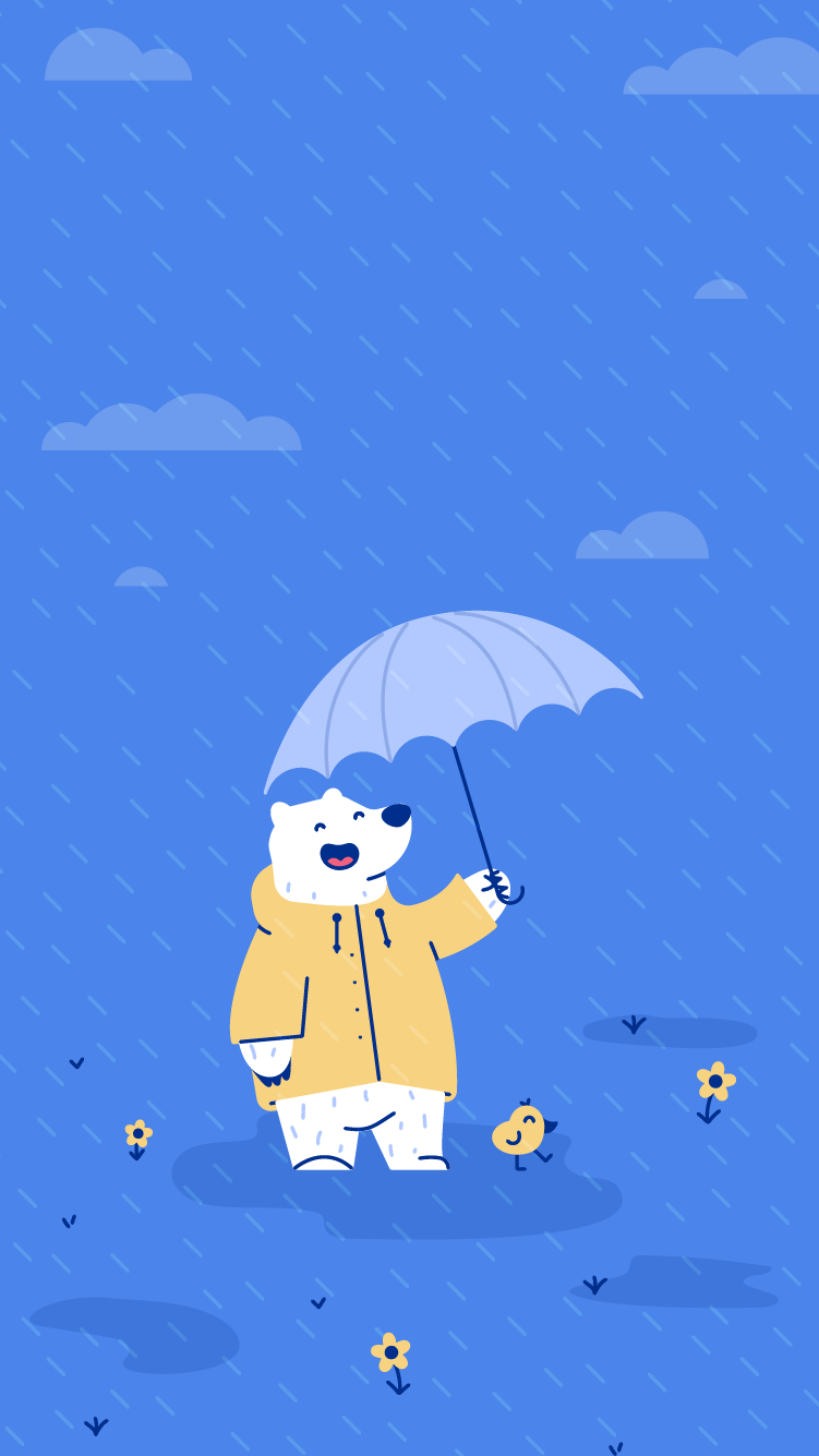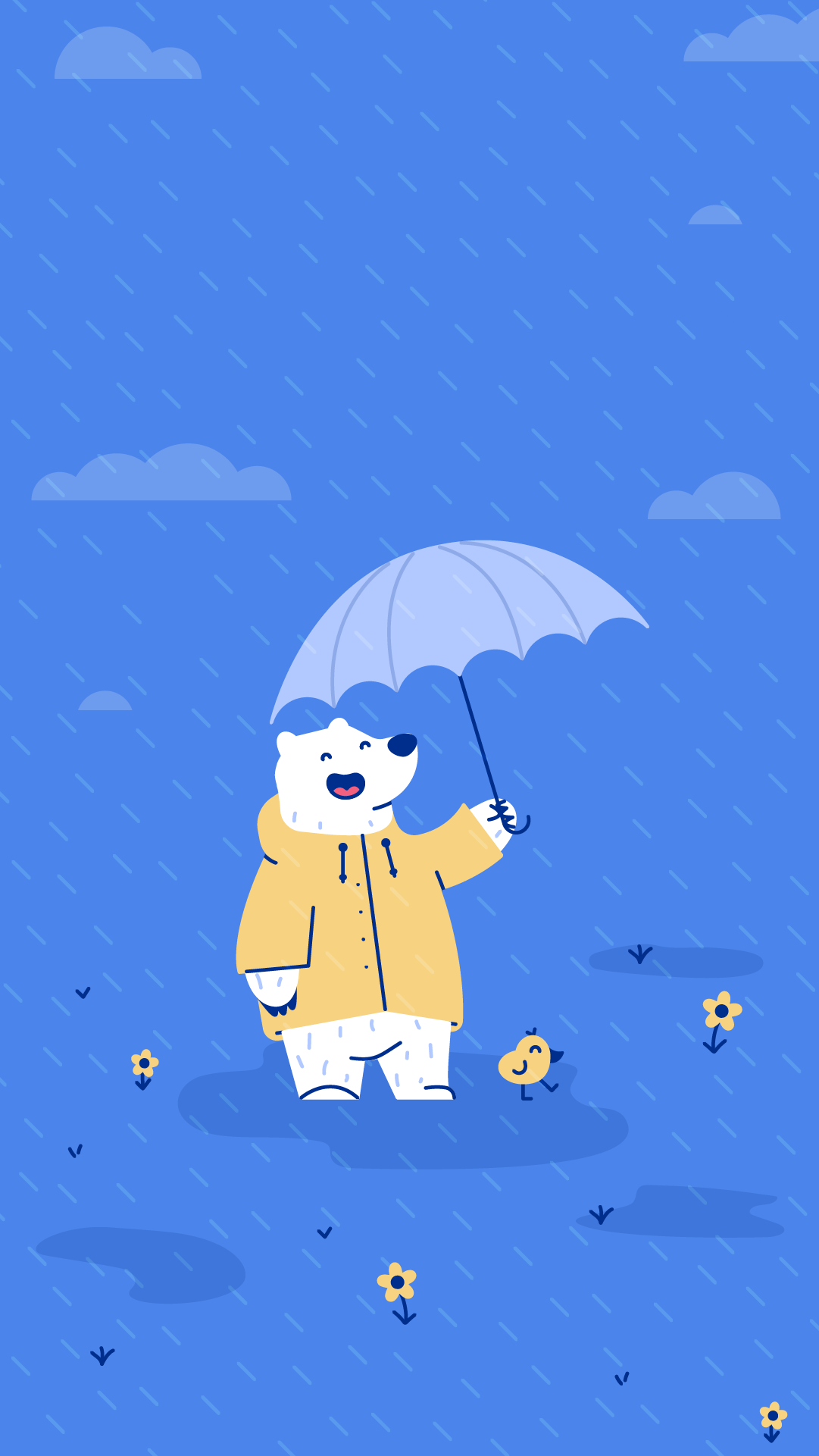 It's a rainy day and Bear and the ducklings are out to play. It's true that April Showers bring May flowers, they can be seen growing already! To join in on the fun, update your home screens today.