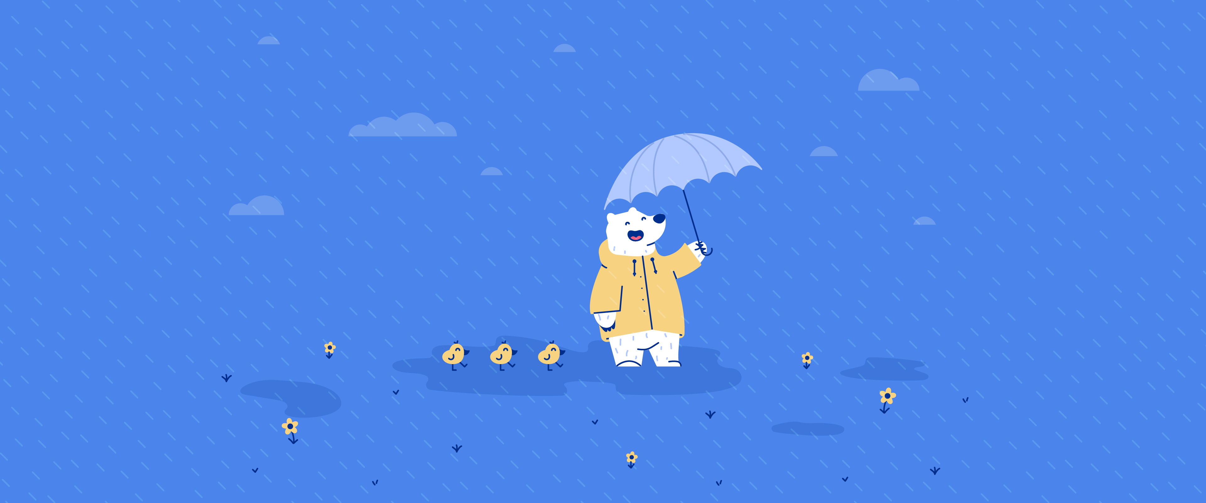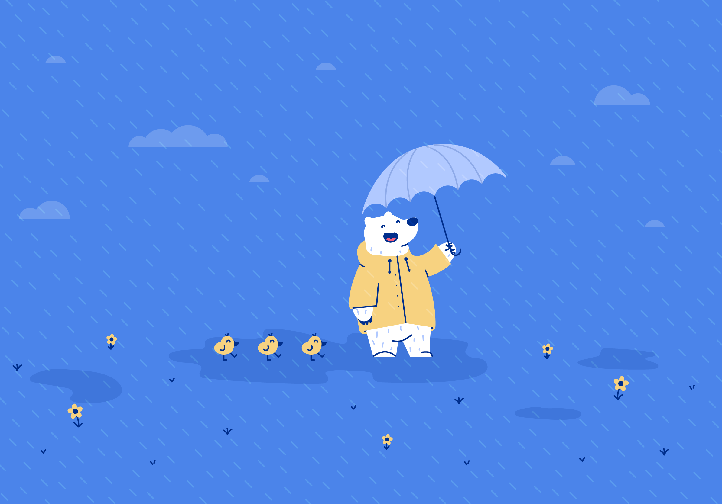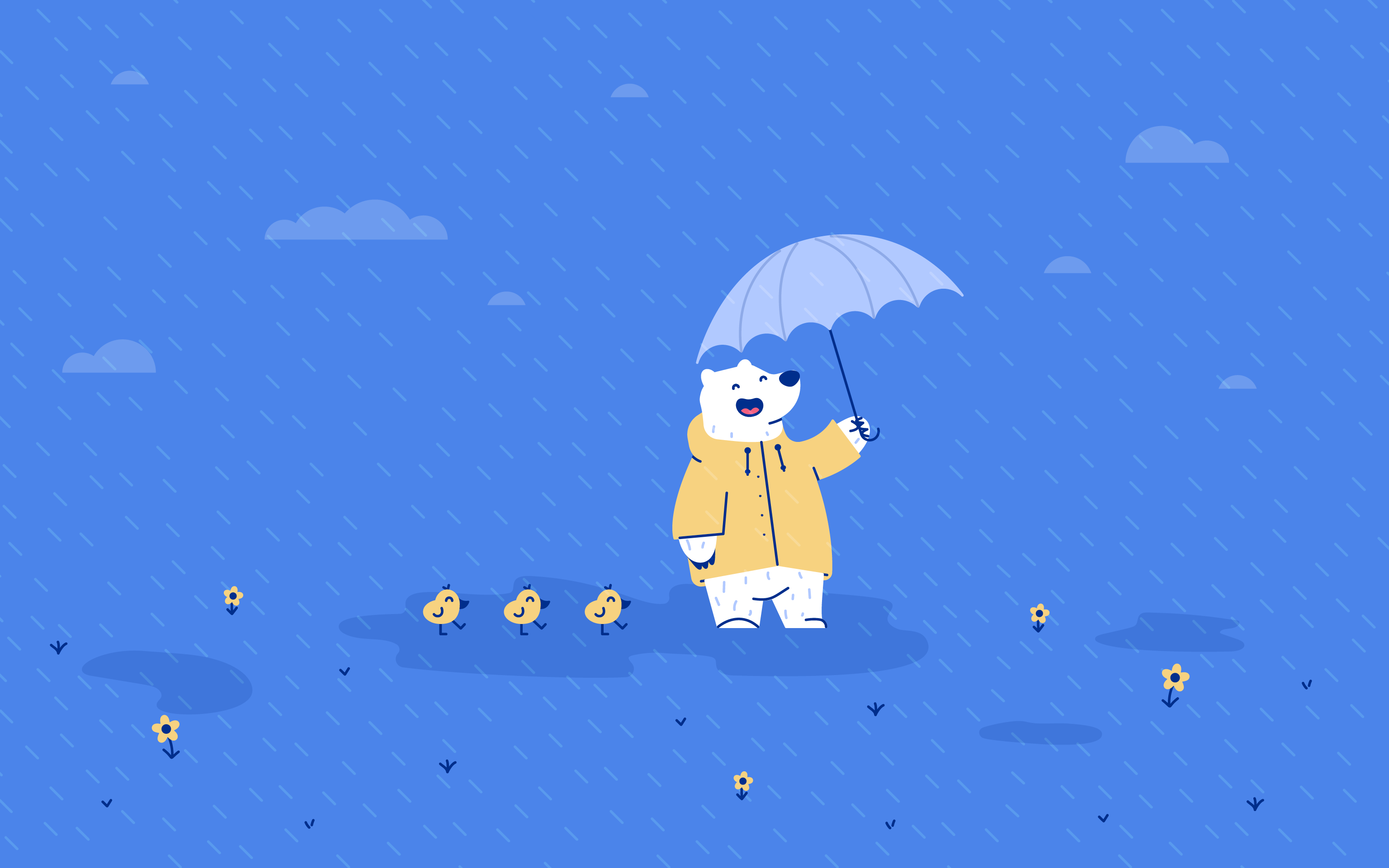 It's a rainy day and Bear and the ducklings are out to play. It's true that April Showers bring May flowers, they can be seen growing already! To join in on the fun, update your home screens today.