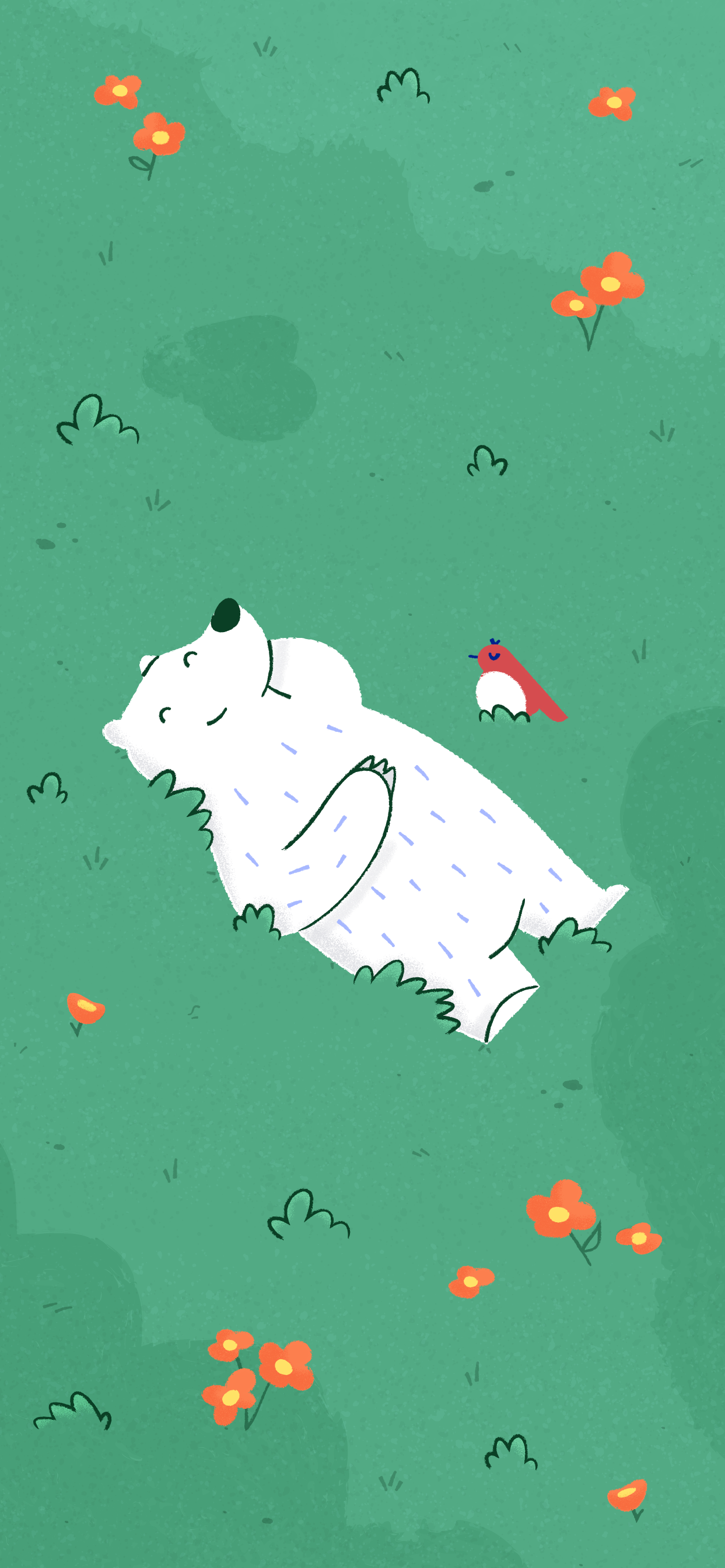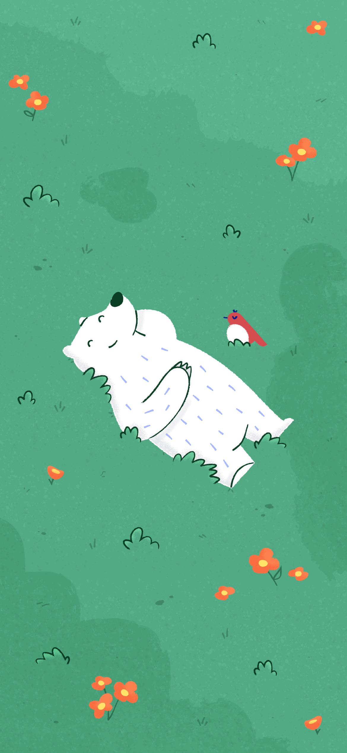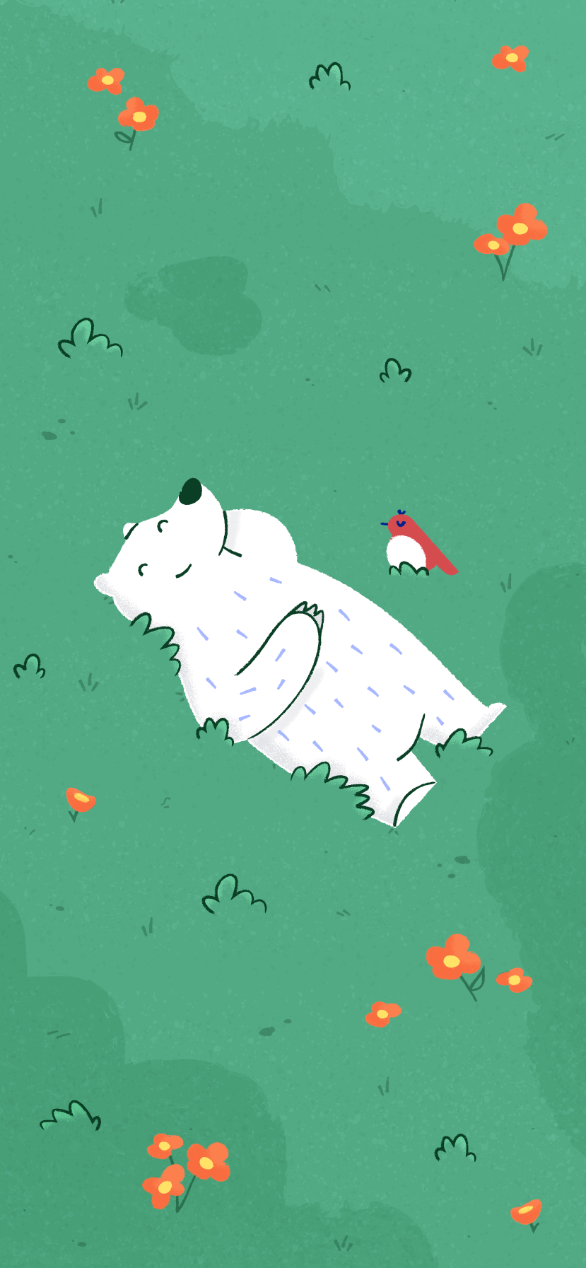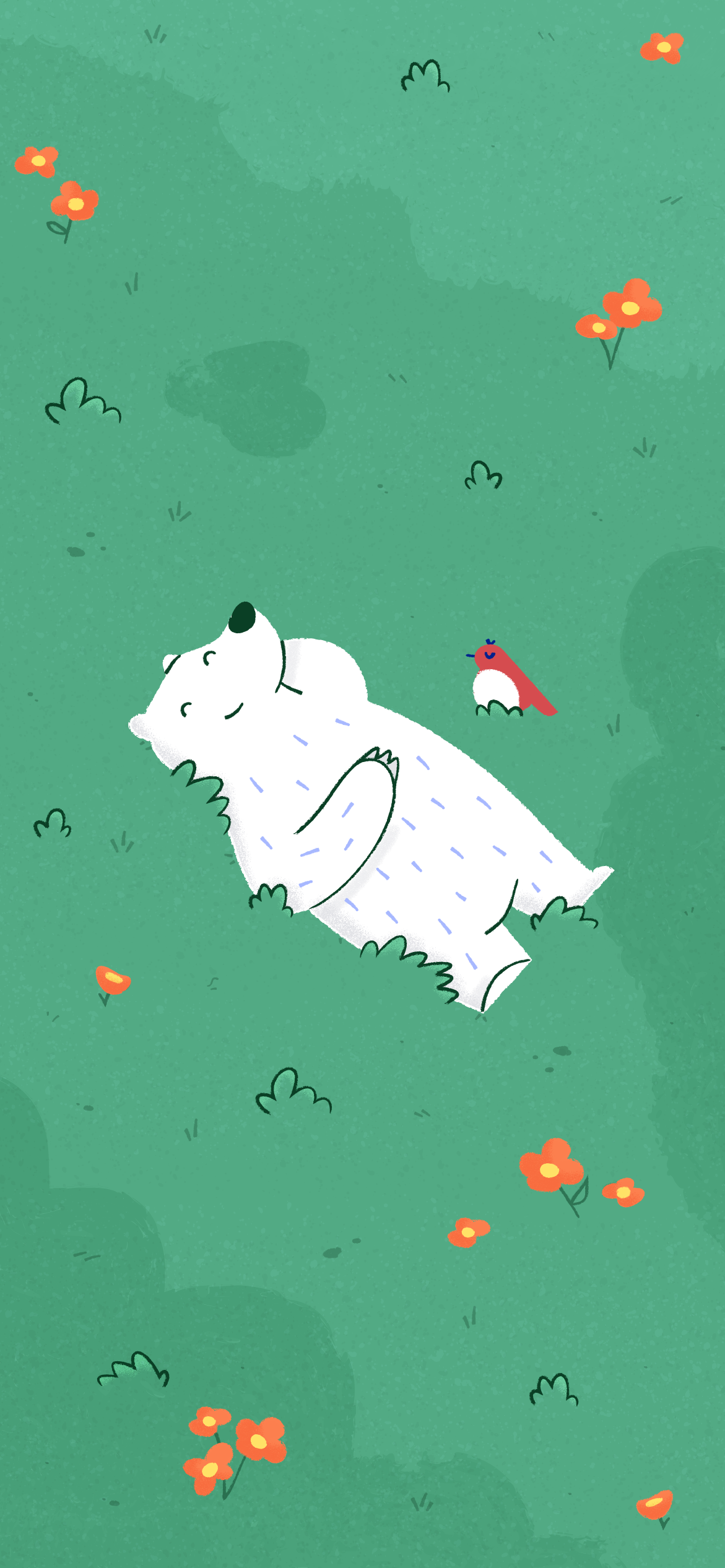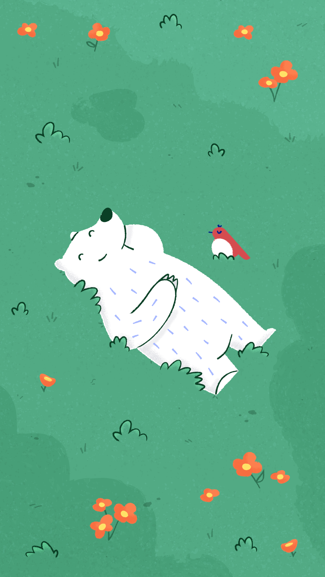 A serene meadow, a sleeping Bear, and a sense of harmony bring the best parts of spring to life in this wallpaper. Get in the mood for spring by switching up your wallpaper today. Join Bear as he sleeps in the sunshine.π΄π