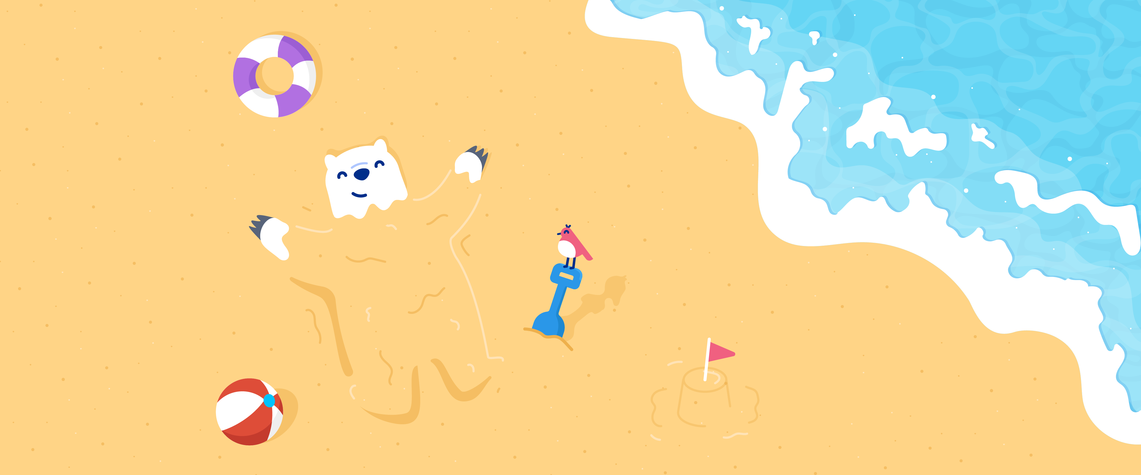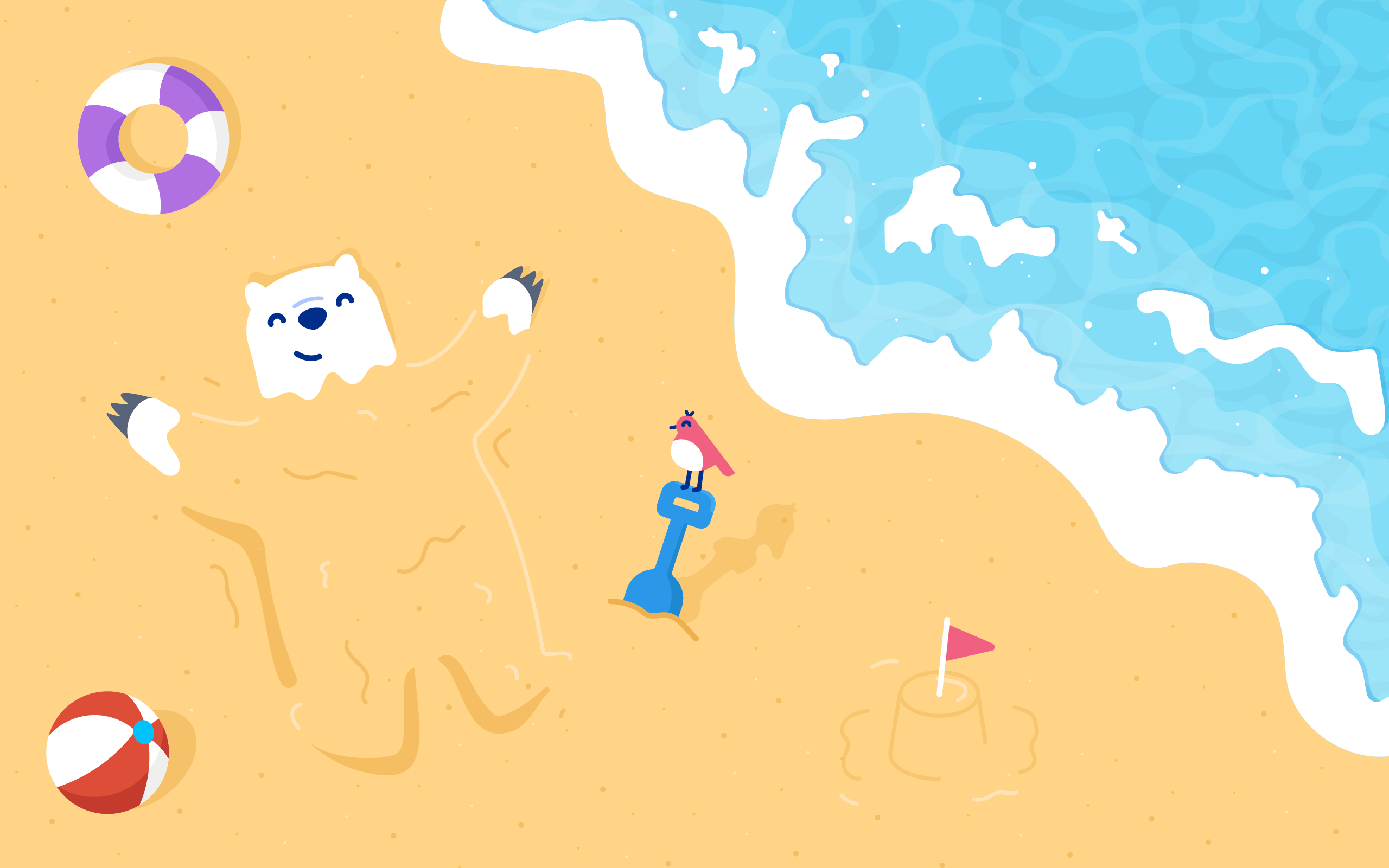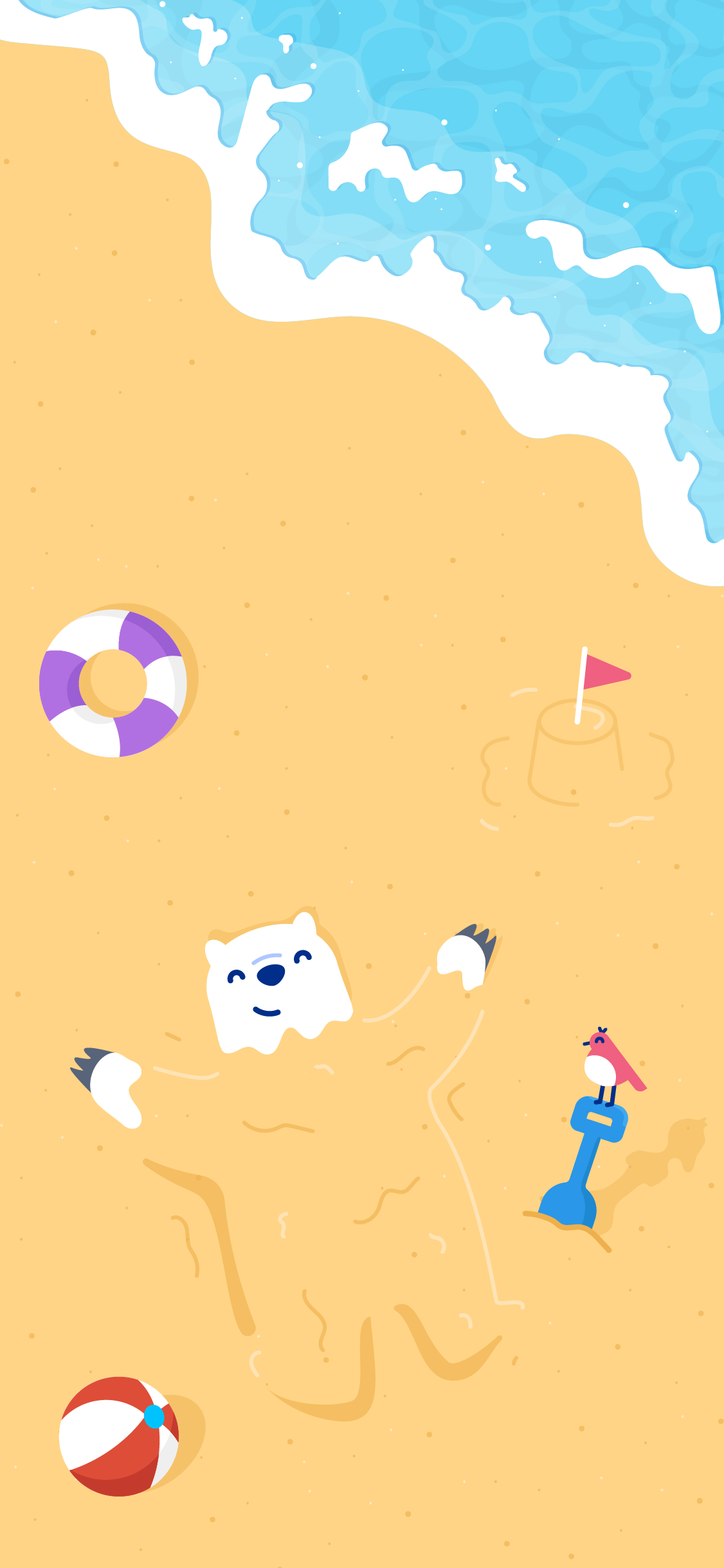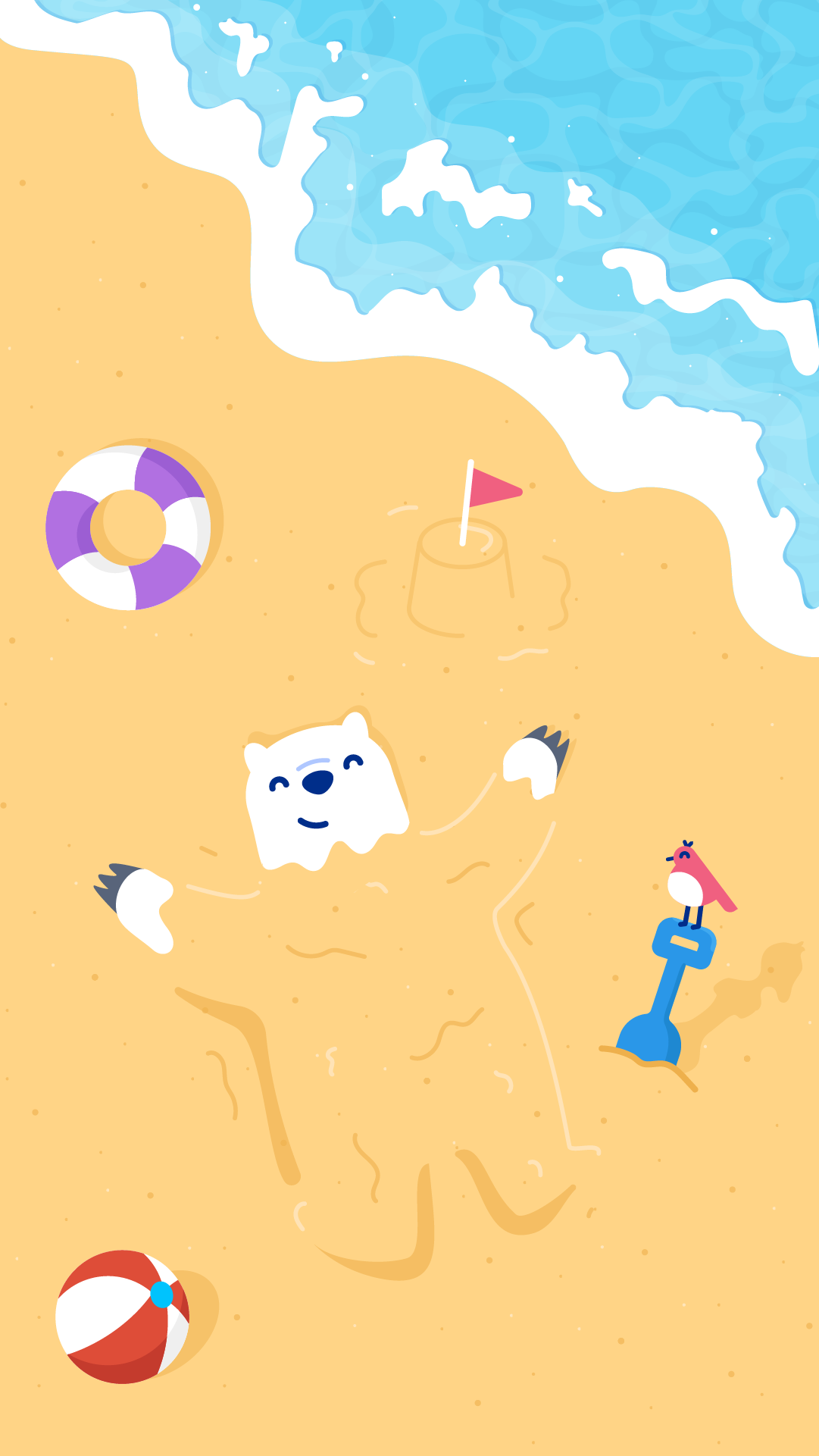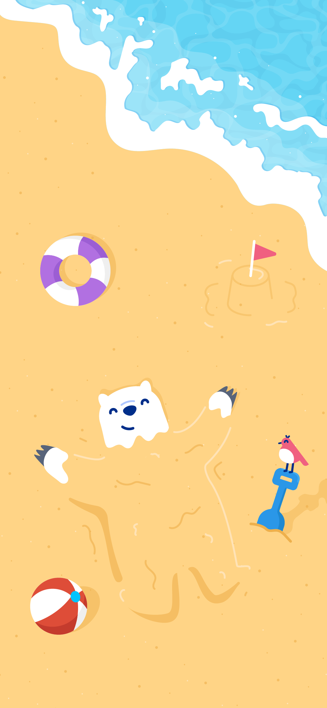 Where has our little Bear turned up this time? Bear-ied in the sand where the sea meets the land. To join him for some fun in the sun, update your wallpaper today!