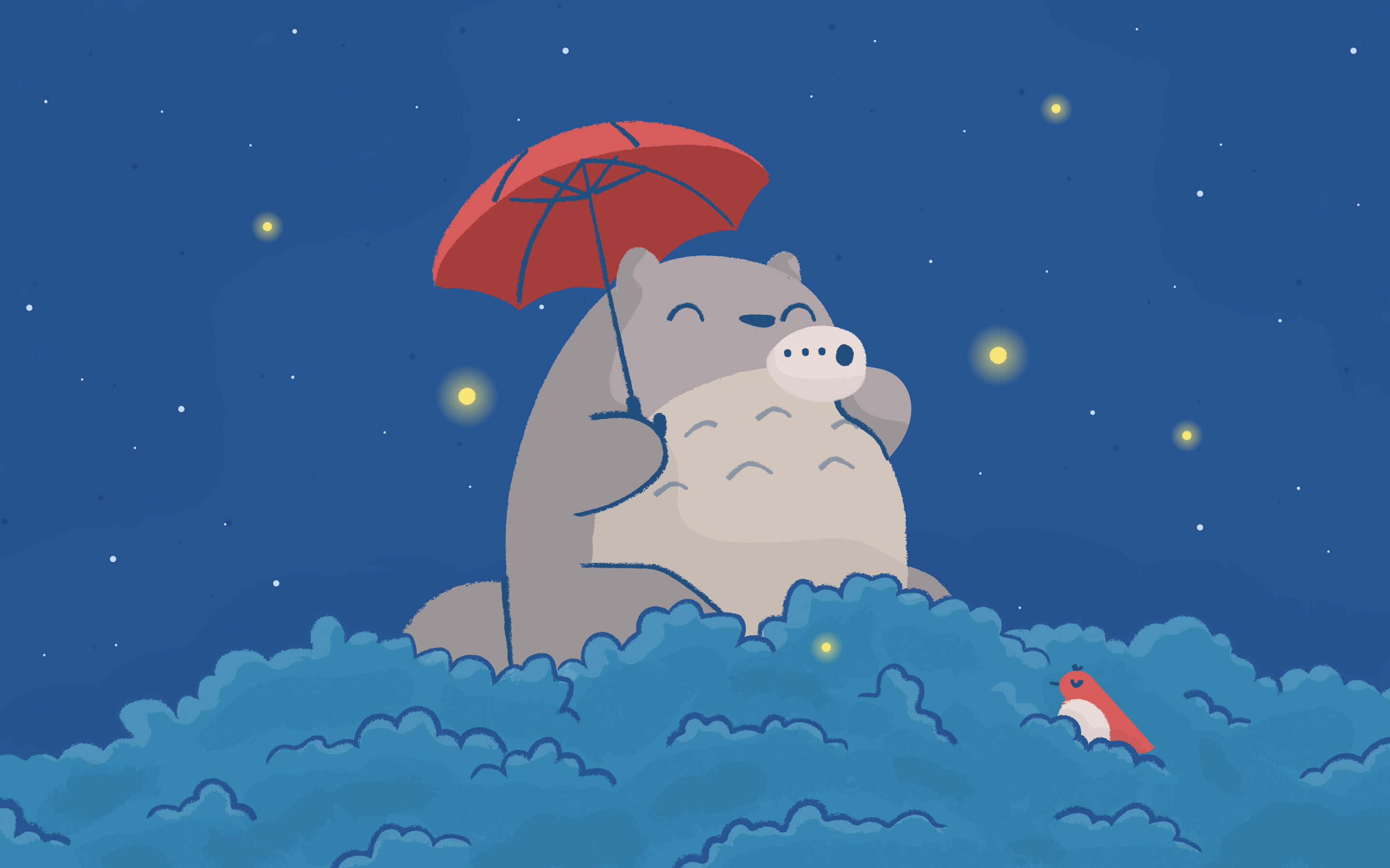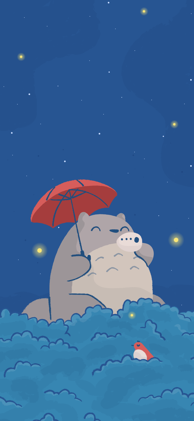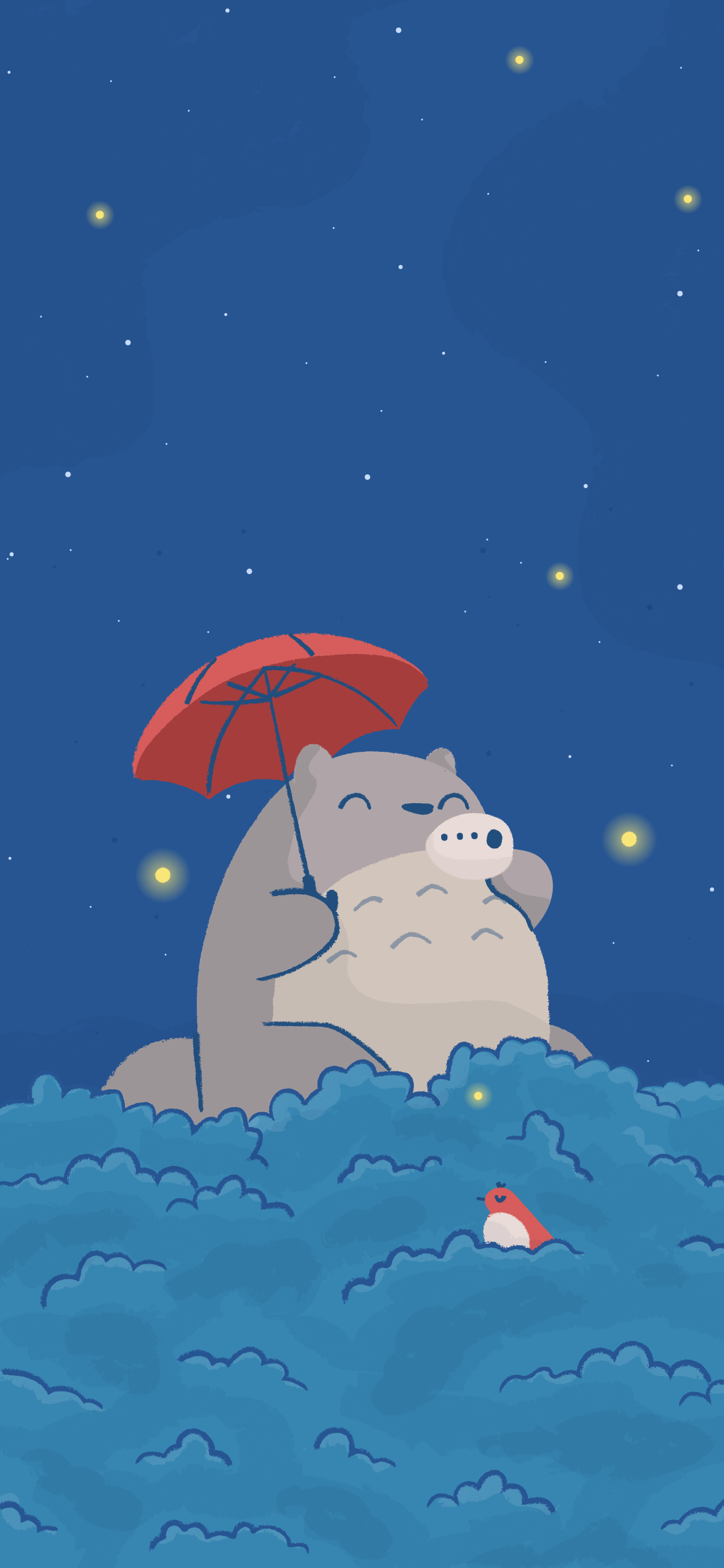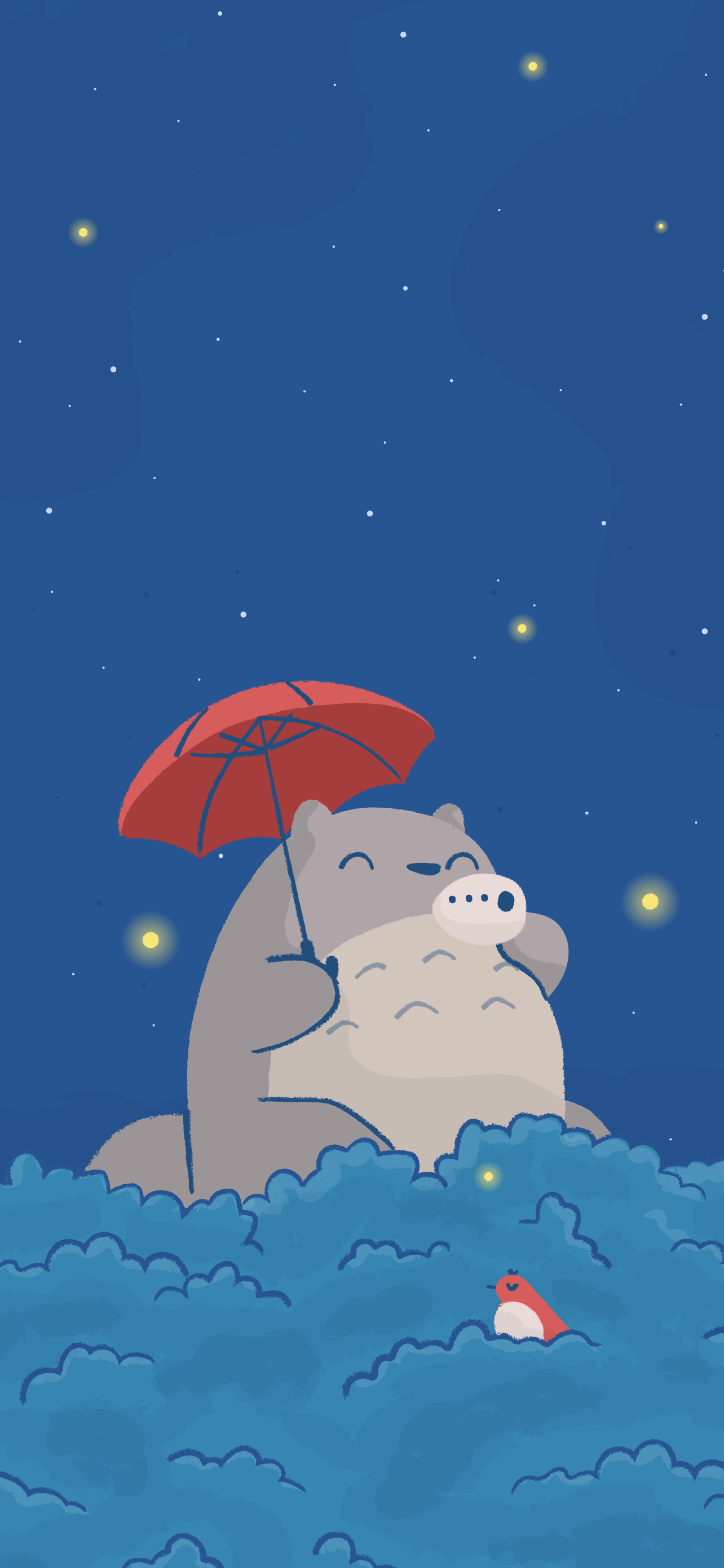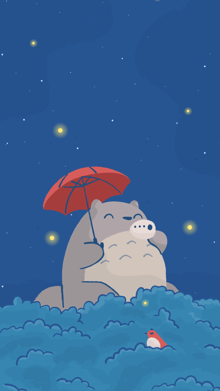 A peaceful scene inspired by My Neighbor Totoro. Nestled on a tranquil hill and serenading the night, this wallpaper brings true serenity to your desktop. Give your screen a starry makeover today!π