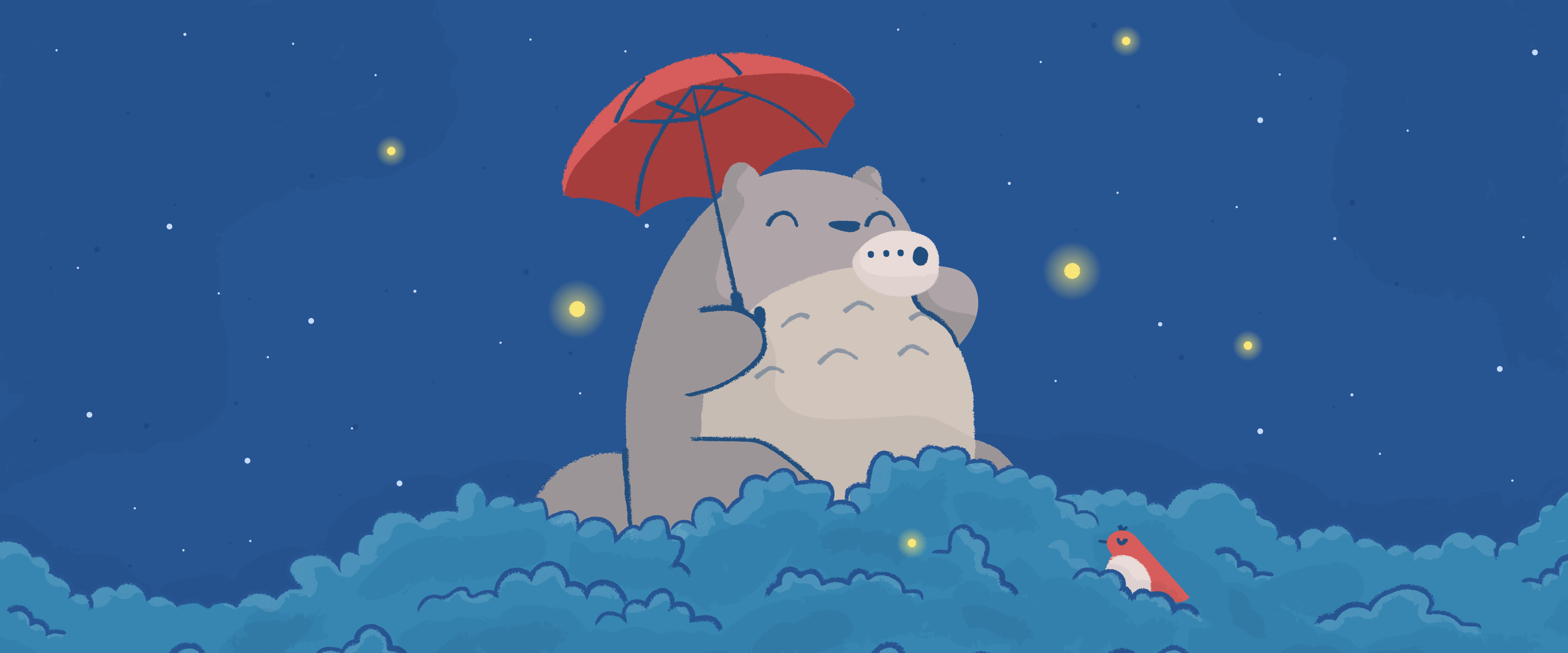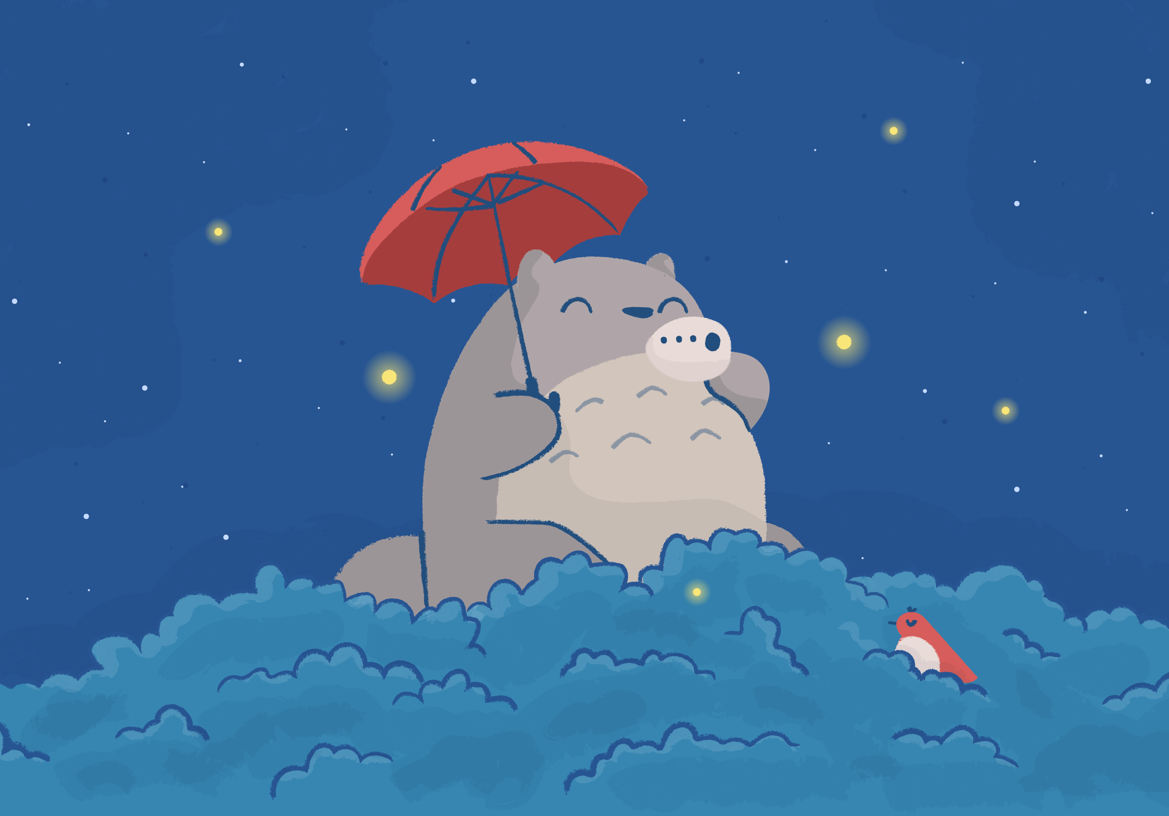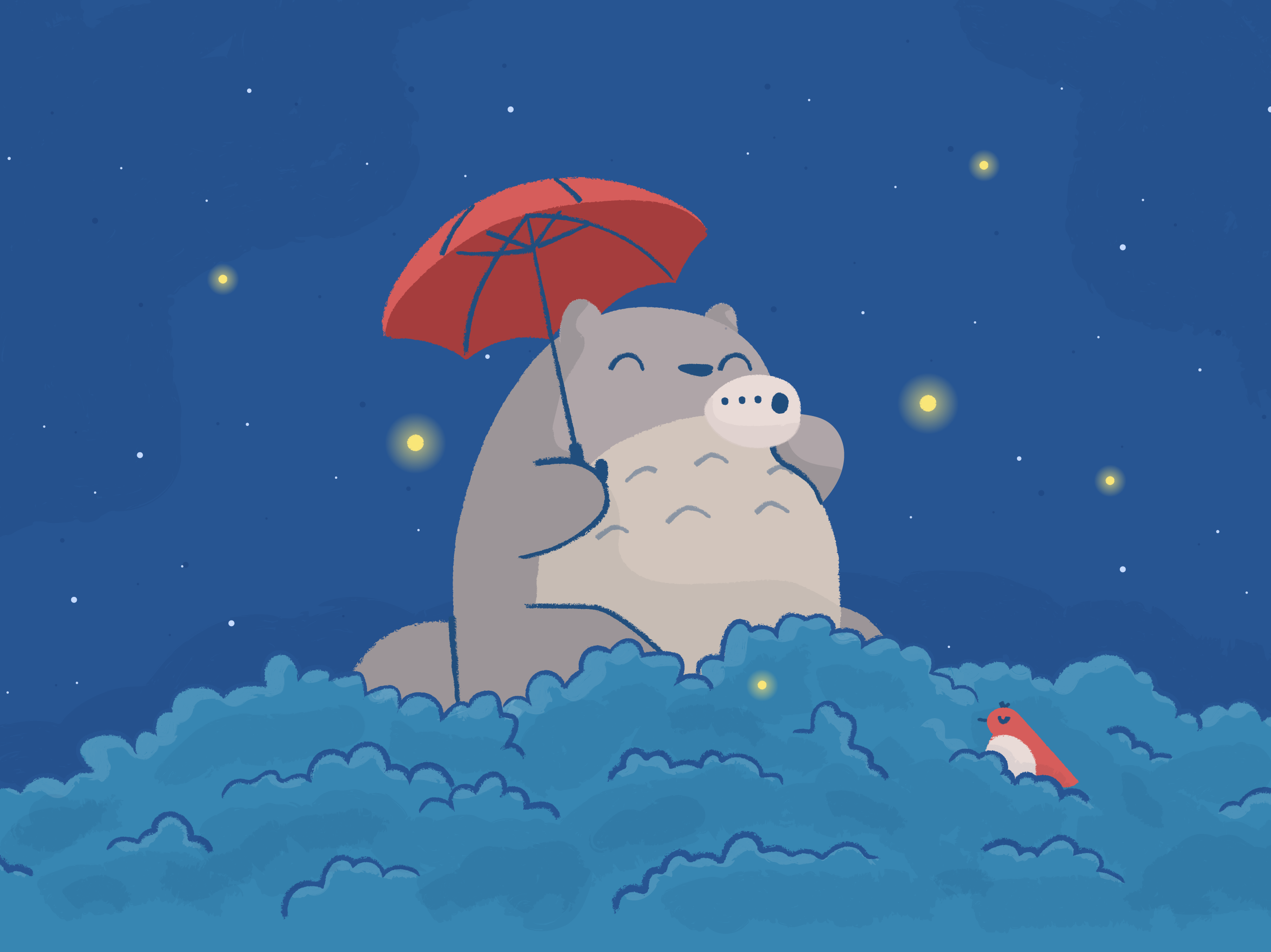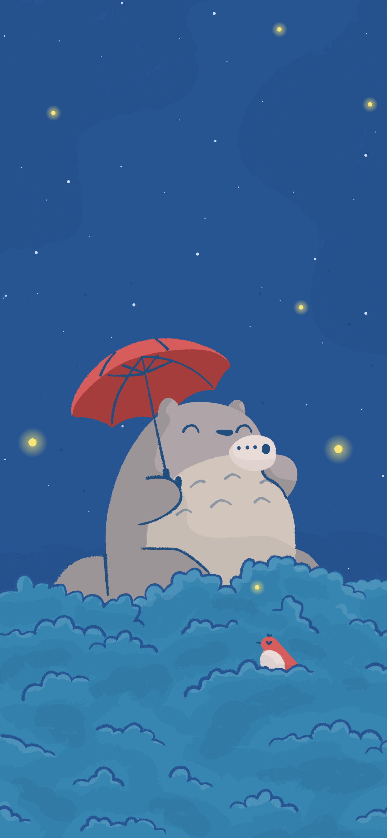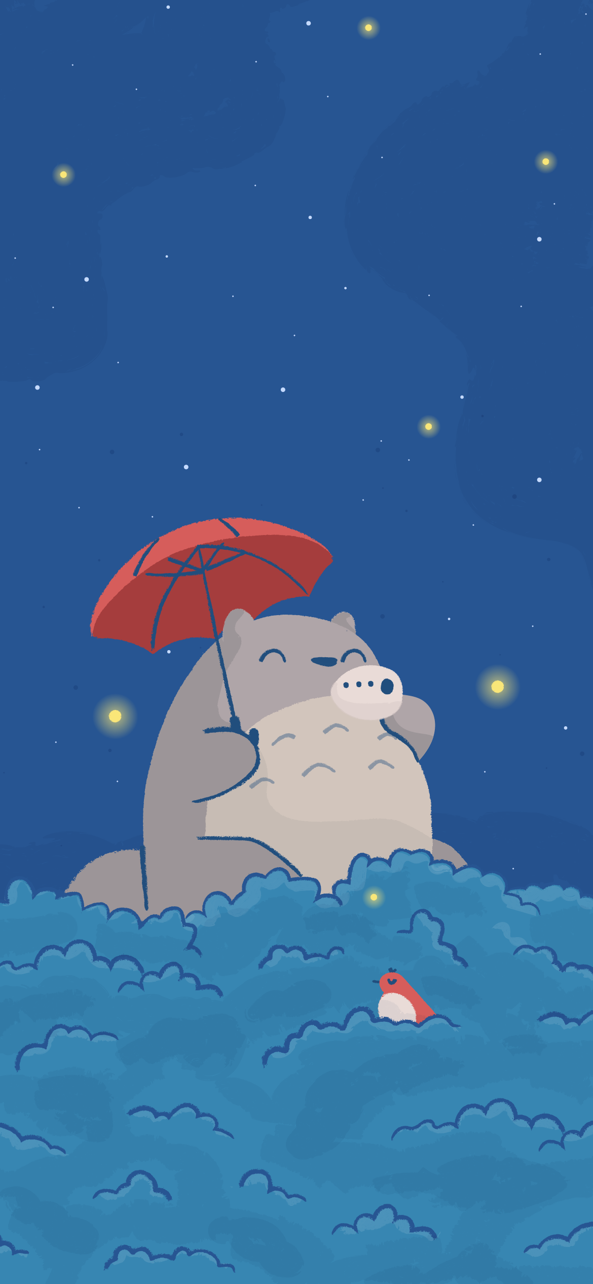 A peaceful scene inspired by My Neighbor Totoro. Nestled on a tranquil hill and serenading the night, this wallpaper brings true serenity to your desktop. Give your screen a starry makeover today!π