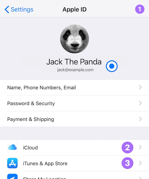 Settings→iCloudPreferences Panel ◉ (❶) (❷) - you are signed into the