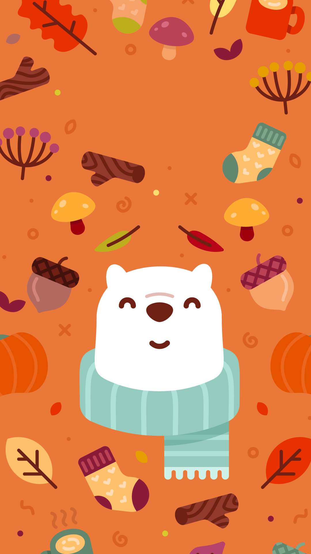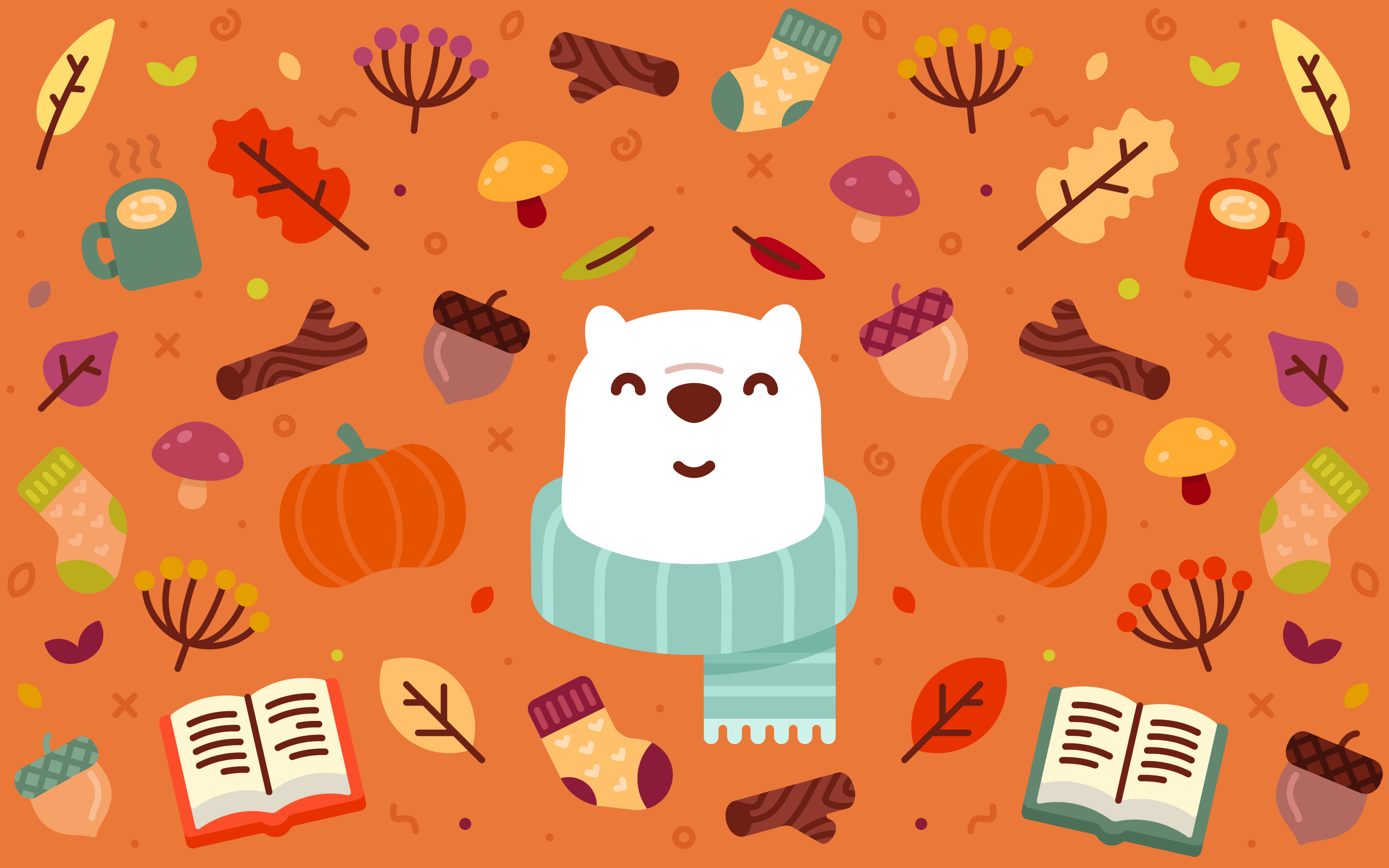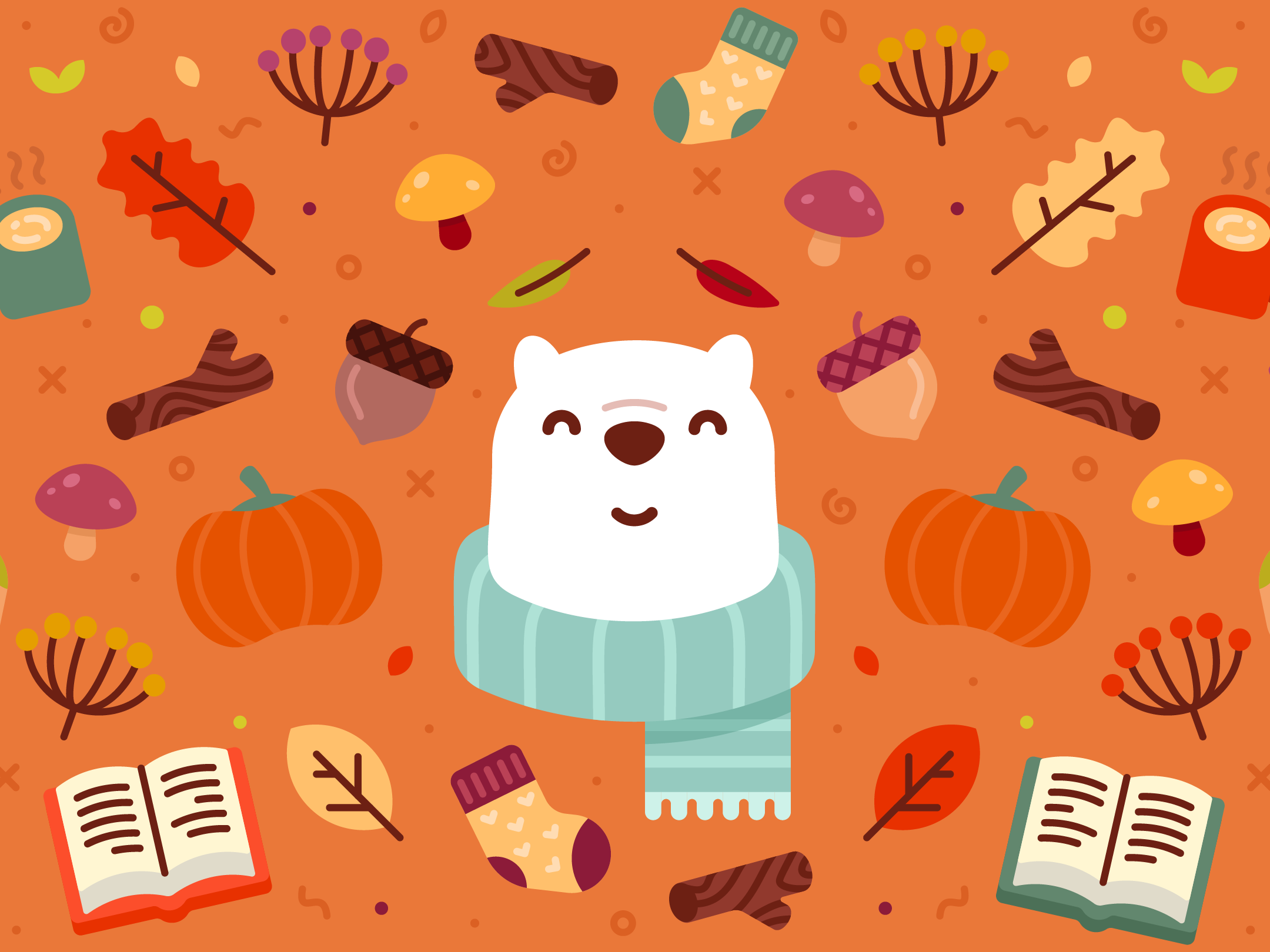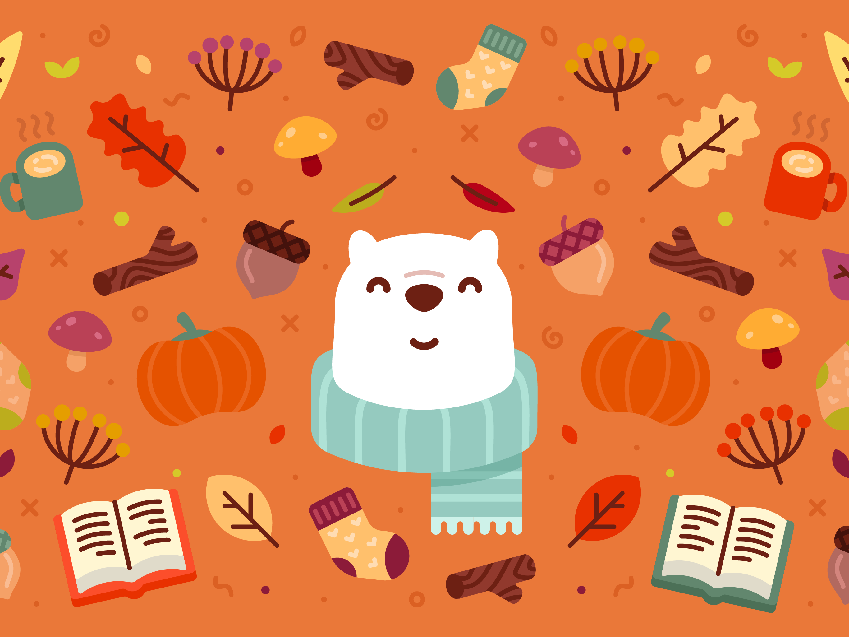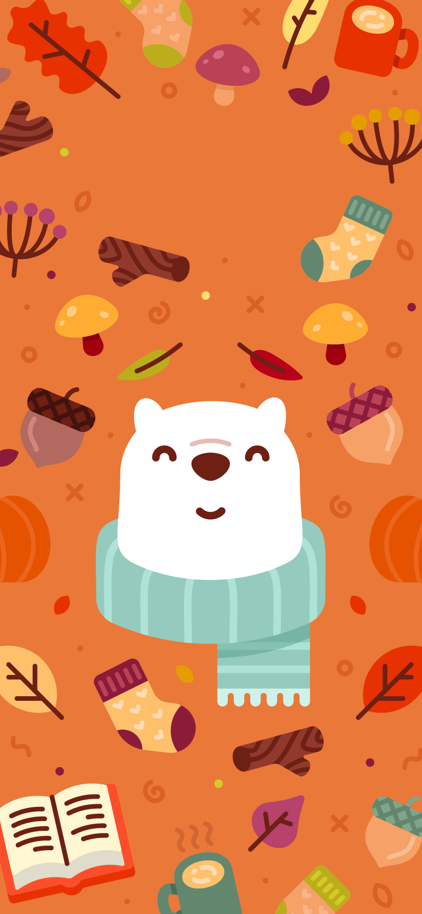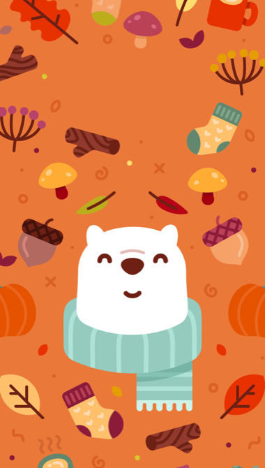 Bundle up for fall with Bear and this pumpkin spicy wallpaper.