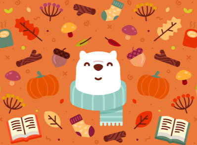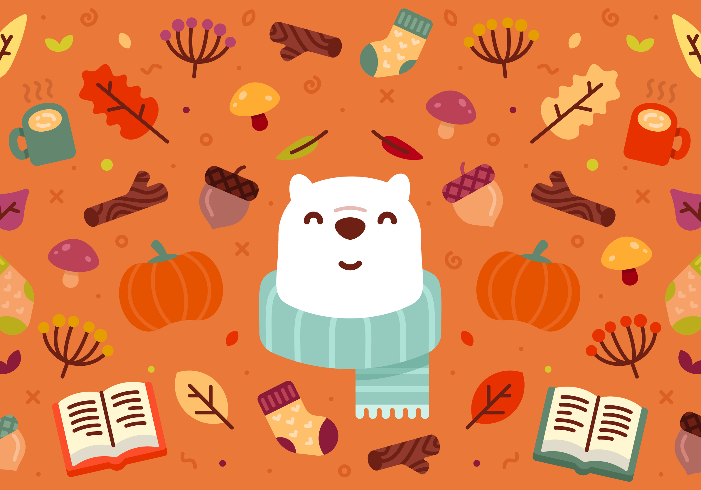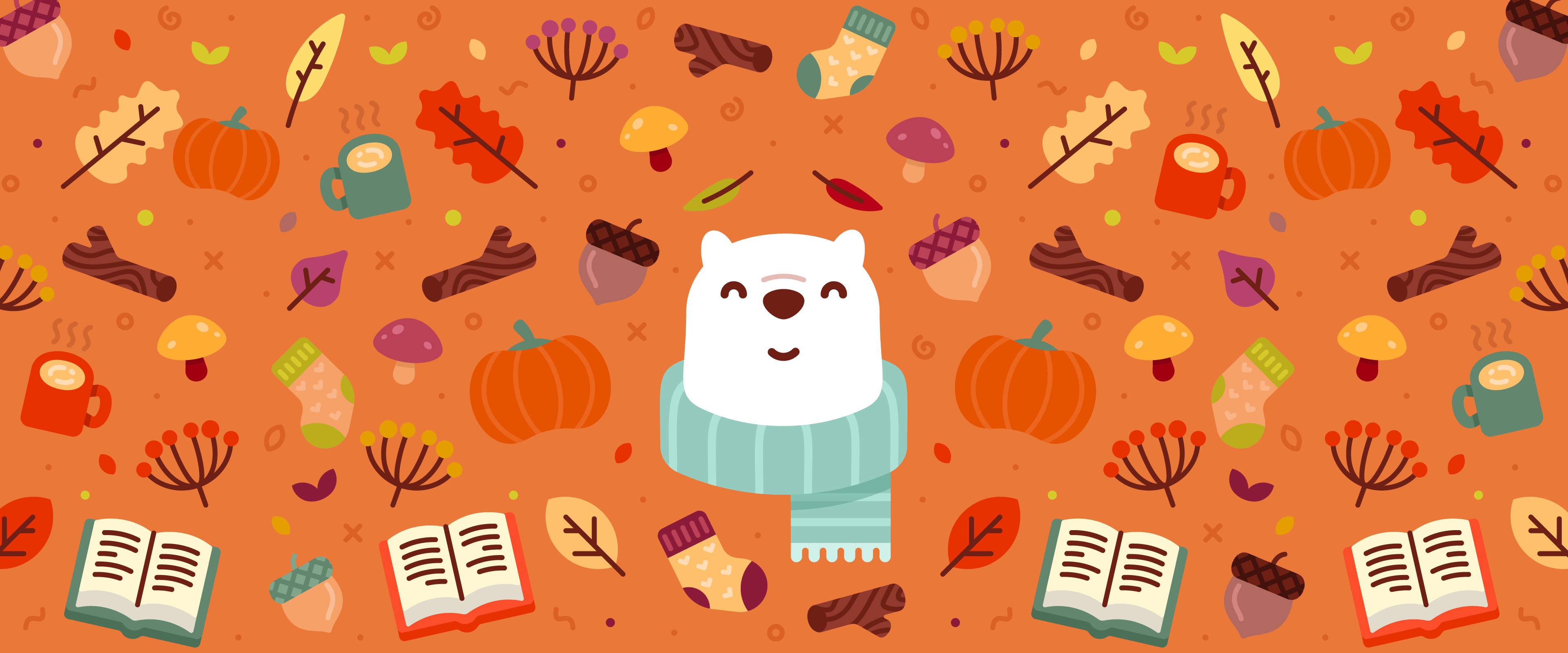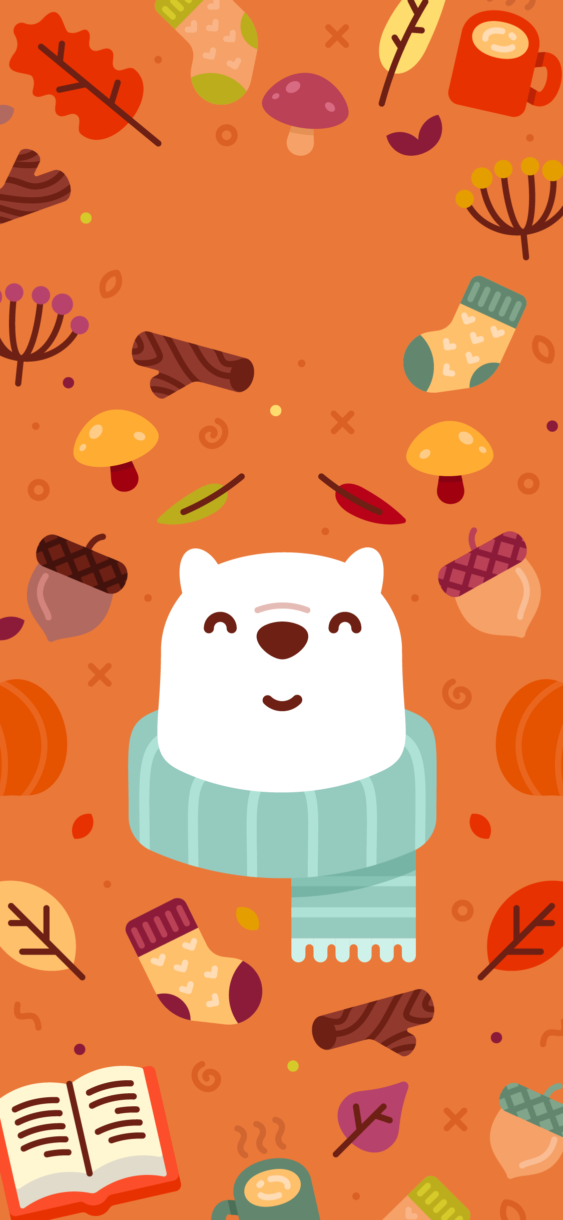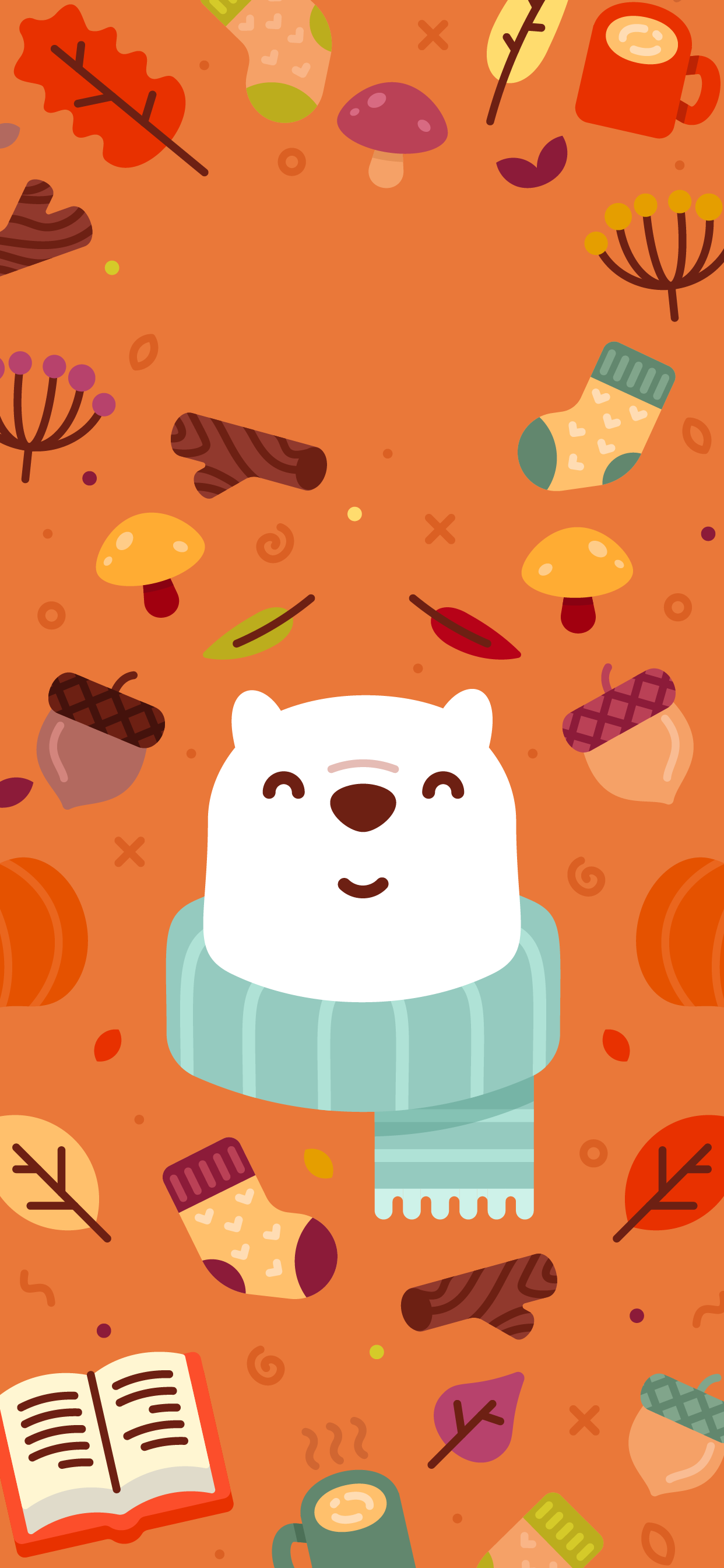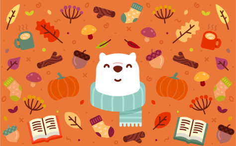 Bundle up for fall with Bear and this pumpkin spicy wallpaper.